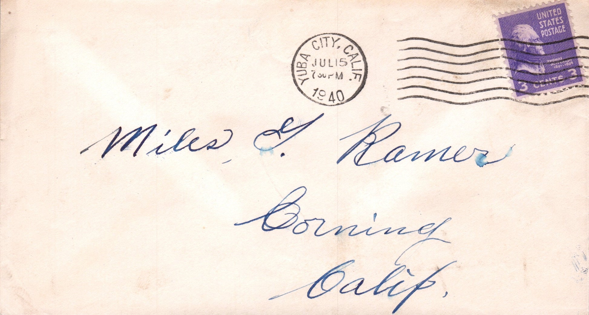 Yuba City 1900 cds on cover with original letter; 1940 machine cancel on cover; 1977 machine cancel on cover