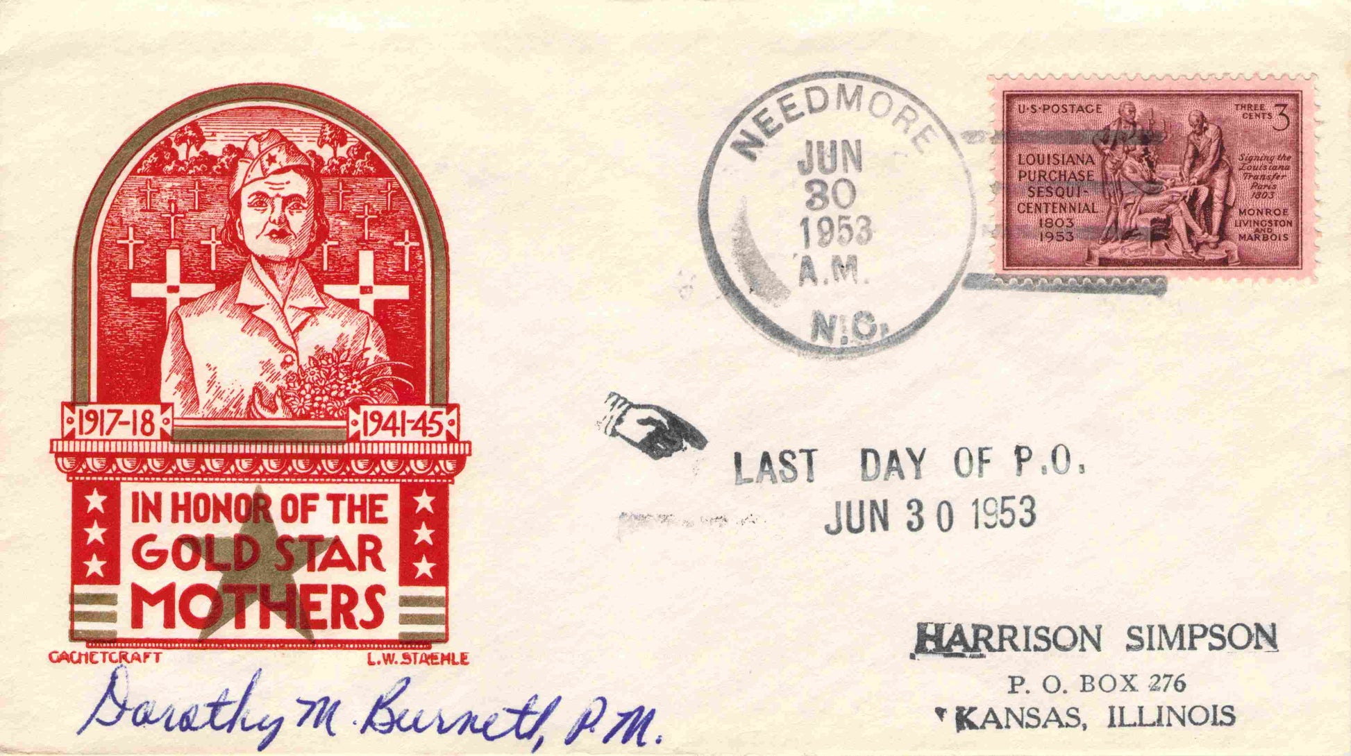 - Needmore (1891-1953) 1953 4-bar on LD cover, PM autograph