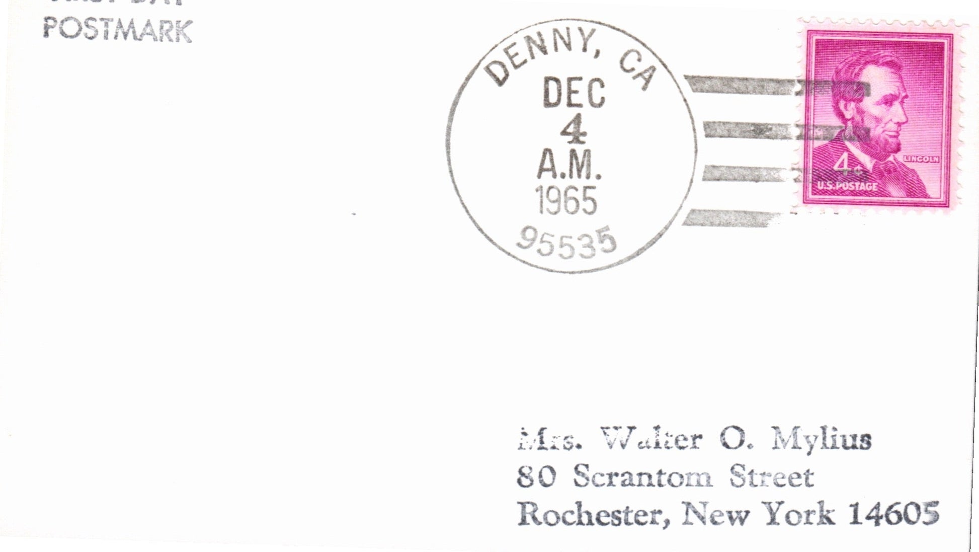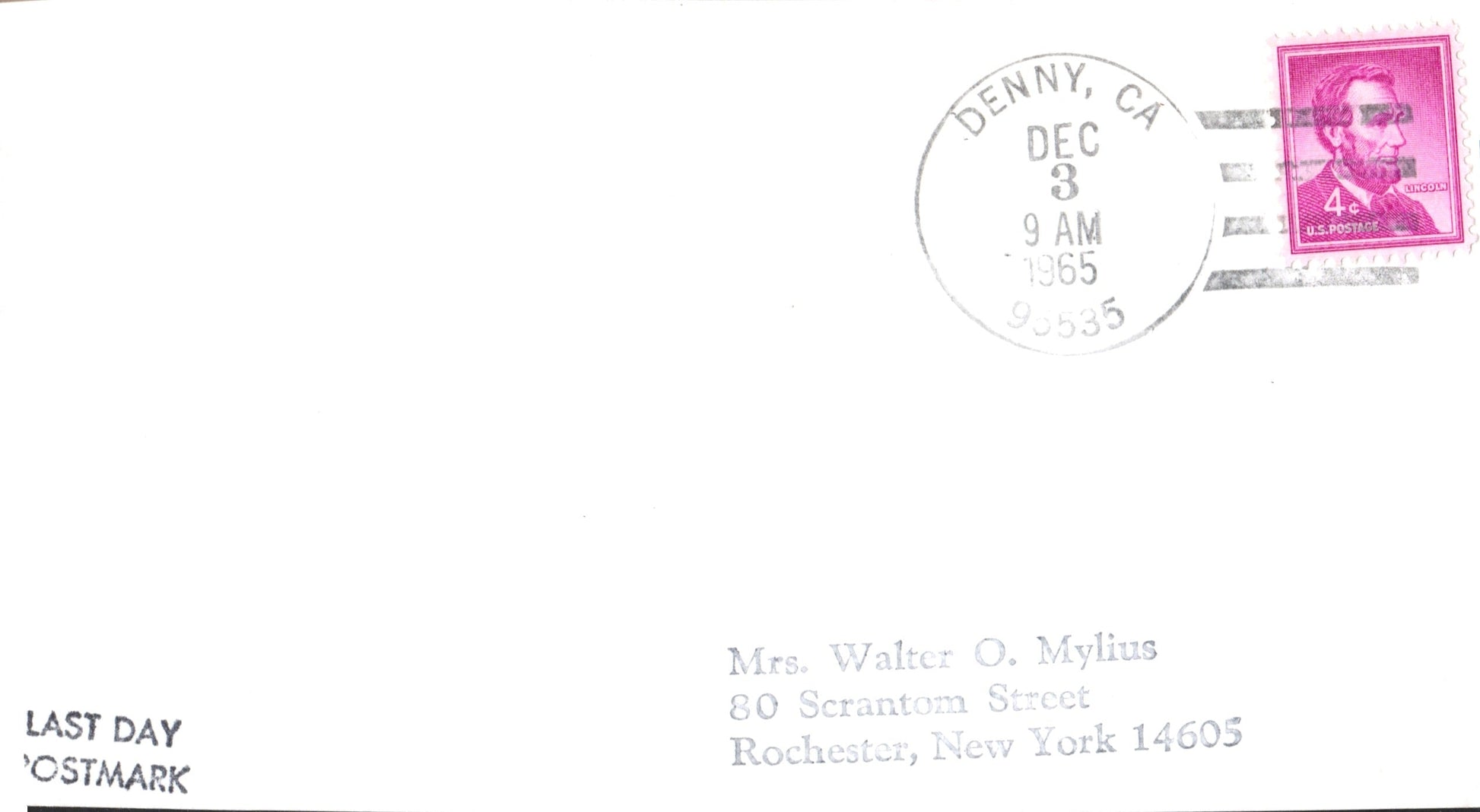 Denny (1890-1965) 1965 4-bar on LD cover-sized card
