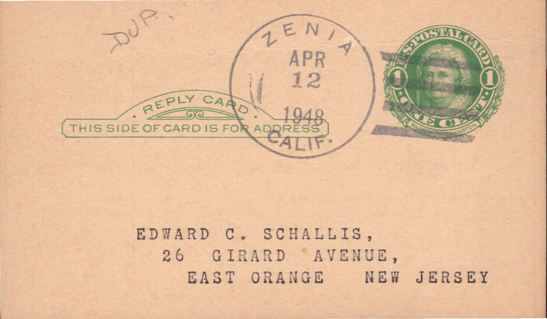Zenia 1948 4-bar on 3x5 card