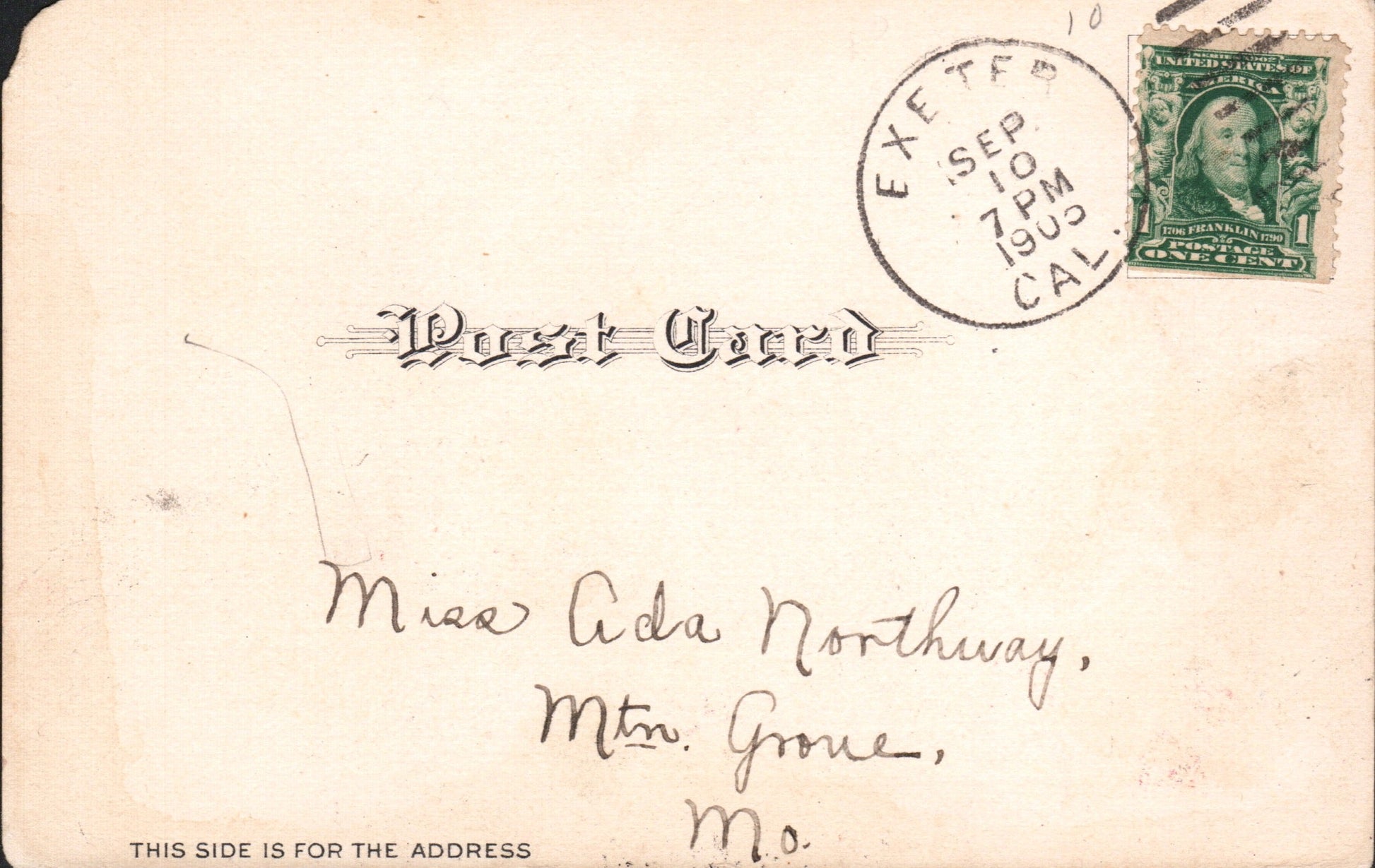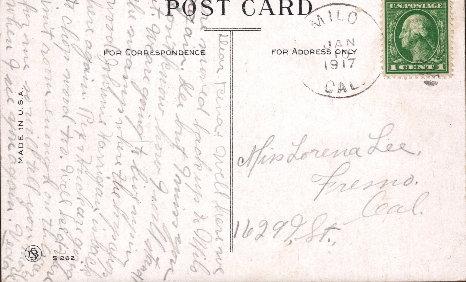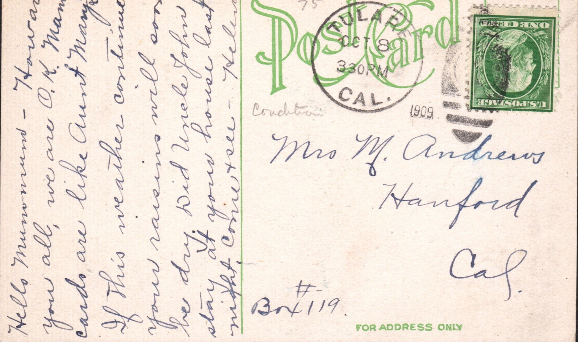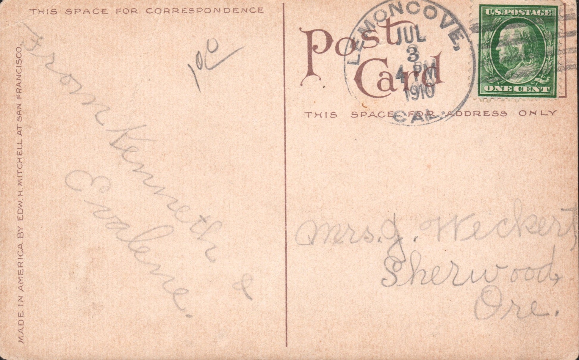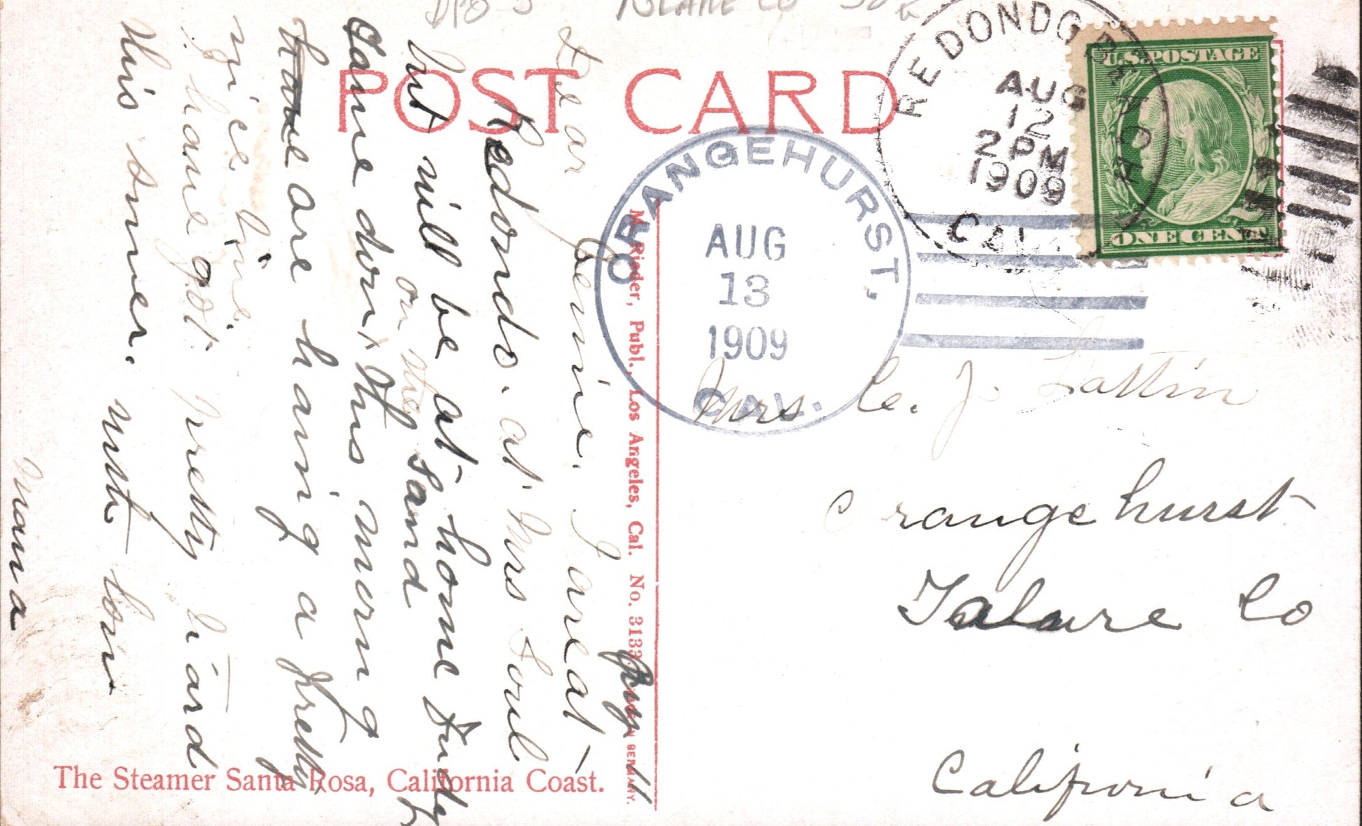 Orangehurst (1908-1916) 1909 4-bar a rec’d mark on post card from Redondo Beach