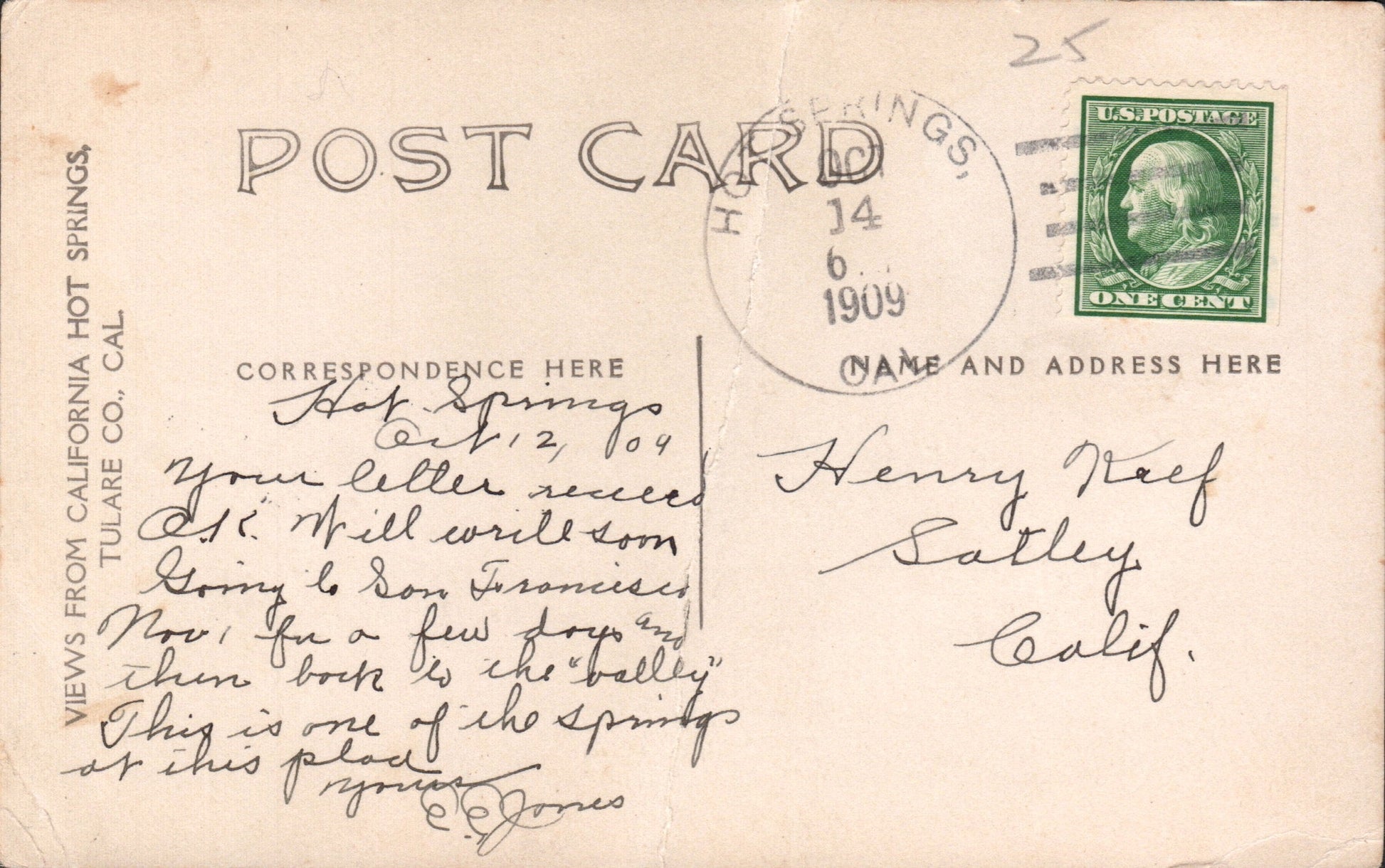 Post card: Kaweah Post office [smaller size] postmarked Kaweah