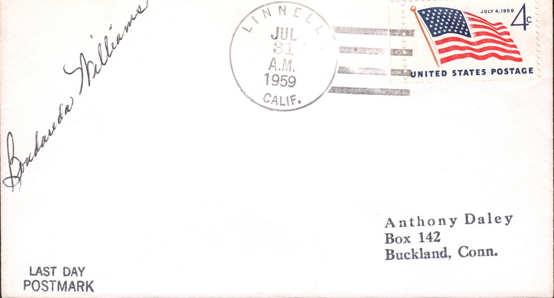 Linnell (1942-1959) 1959 4-bar on cover, PM autograph