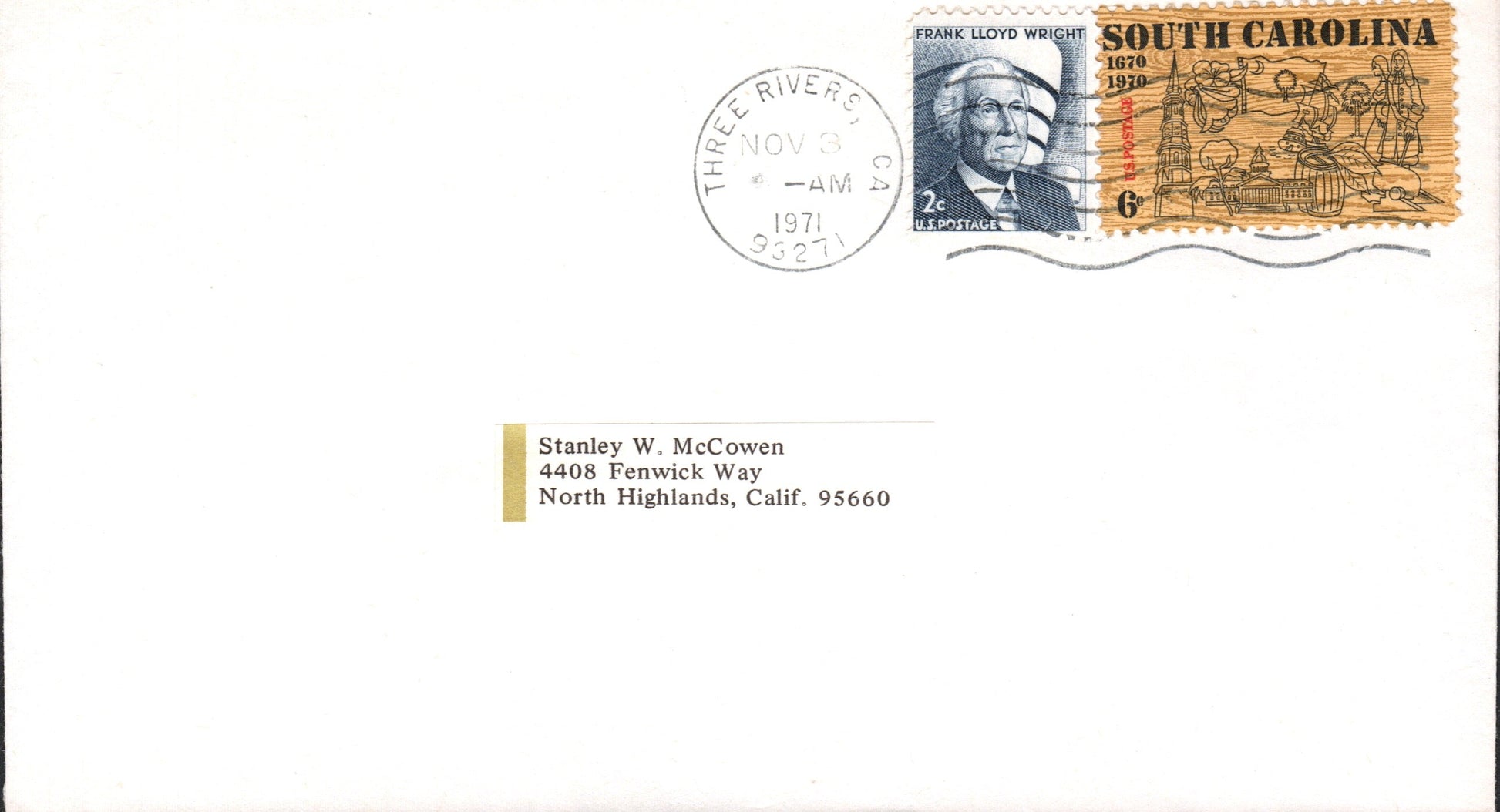 Three Rivers 1971 machine cancel on cover; 2018 short 4-bar on cover