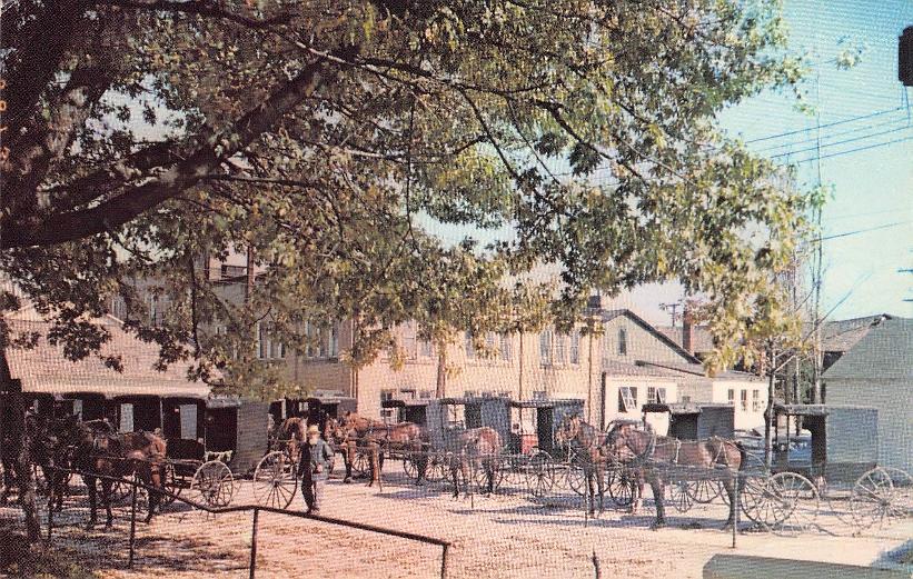 - Sugarcreek Post card: “Old Fashioned Parking Lot” at Amish market