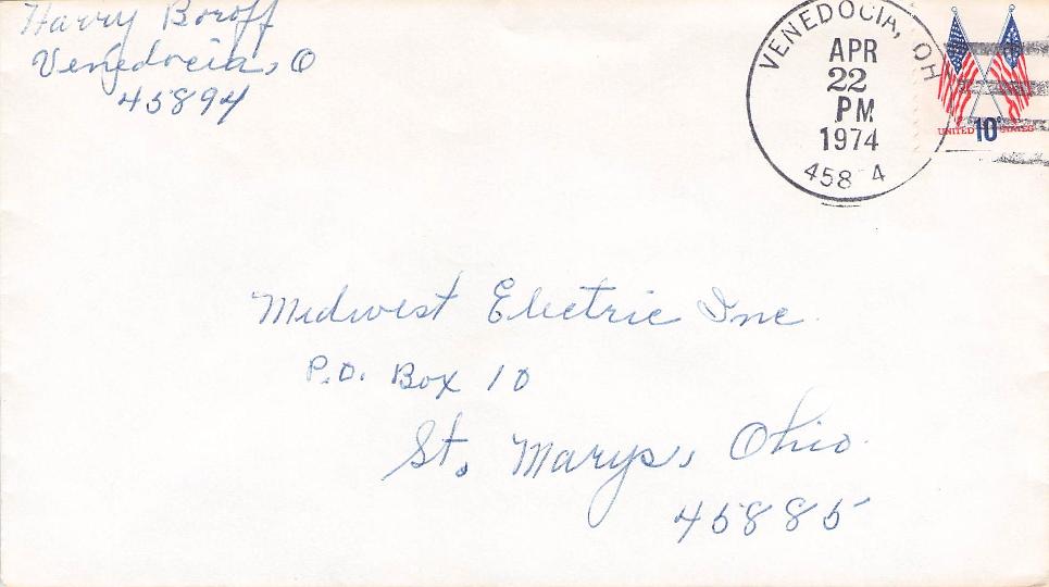 - Venedocia c.1910 4-bar on post card; 1974 4-bar on cover
