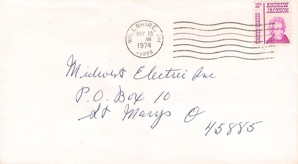 - Willshire 1974 machine cancel on cover