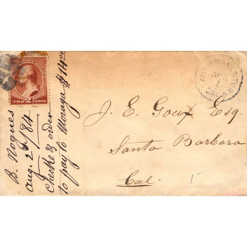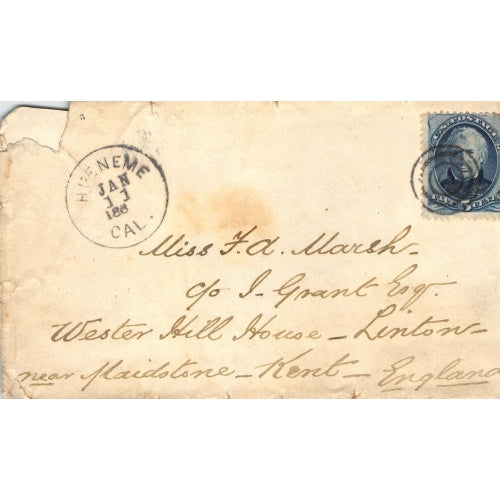 Hueneme (1874-1940) 1880 cds & target killer on worn cover, back damage