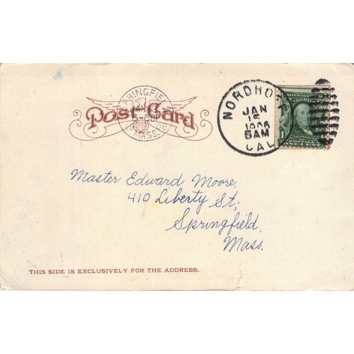 Nordhoff (1874-1917) 1906 duplex on post card, small tear at bottom