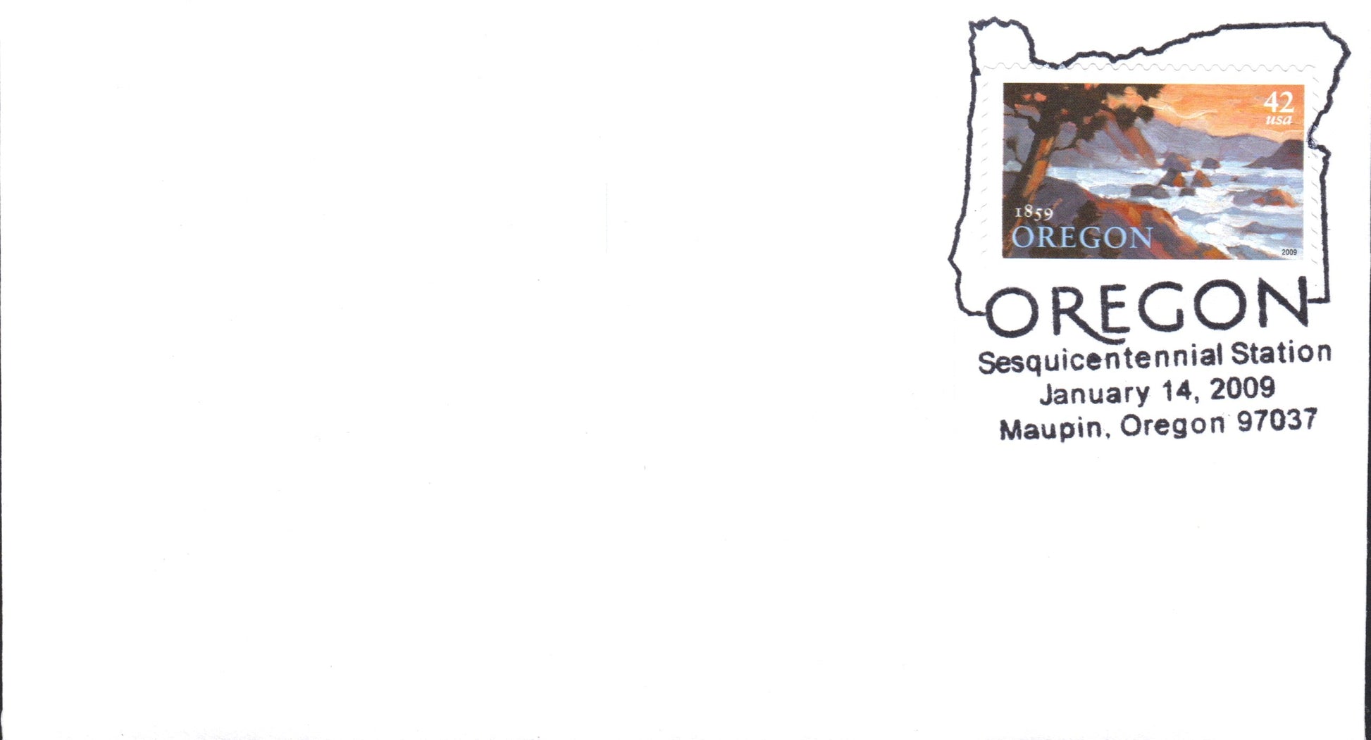 Maupin 1984 machine cancel on cover; 2009 Oregon Sesquicentennial pictorial cancel on cover