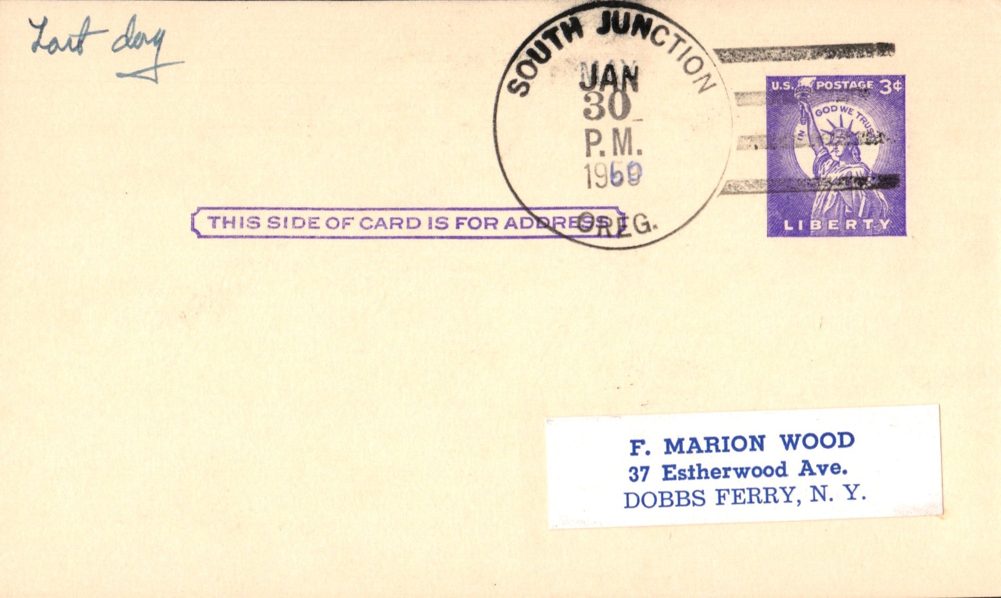 South Junction (1911-1960) 1960 4-bar on LD Postal Card, round dater on back