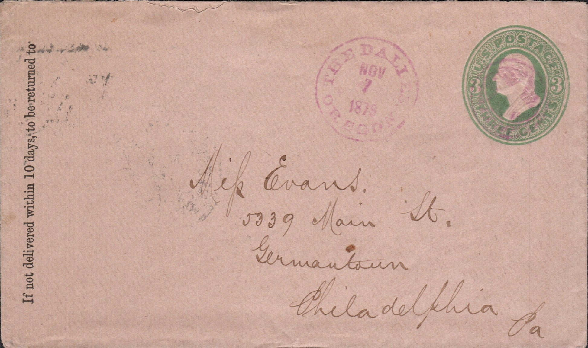 The Dalles nice 1879 cds on cover; 2009 Oregon Sesquicentennial pictorial cancel on cover