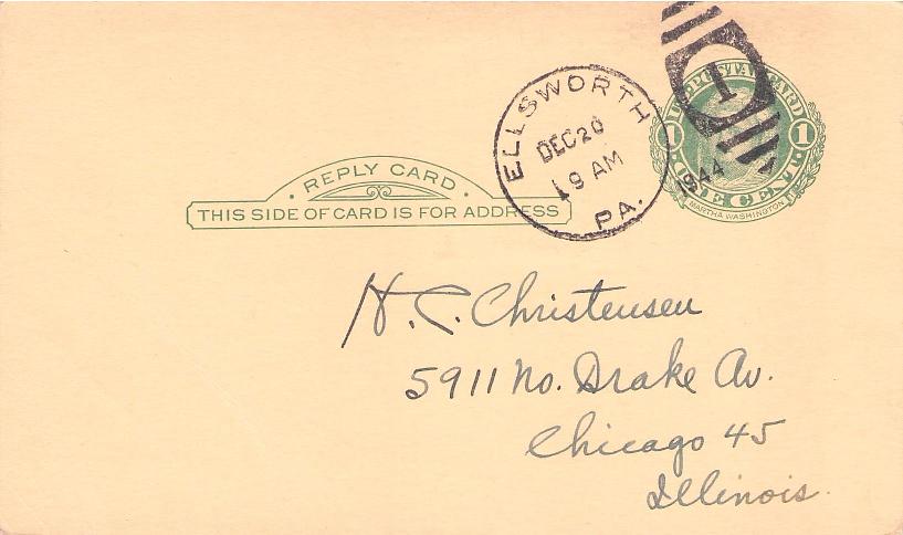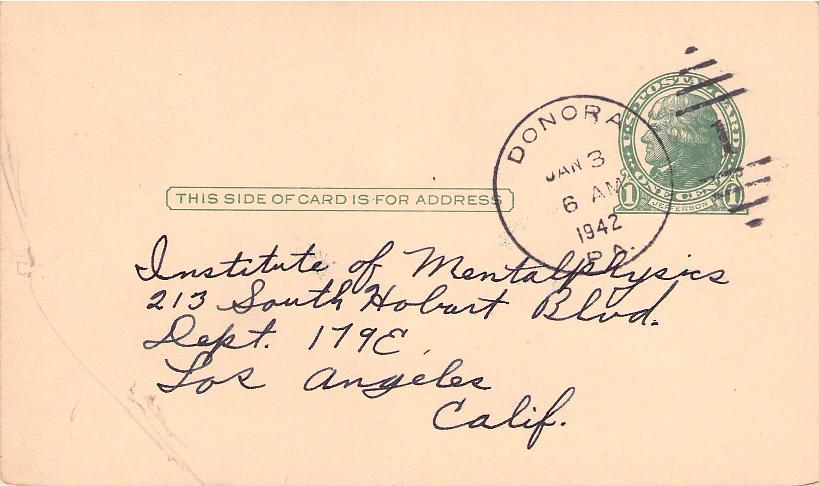 - Donora 1907 cds on post card; 1942 duplex on Postal Card