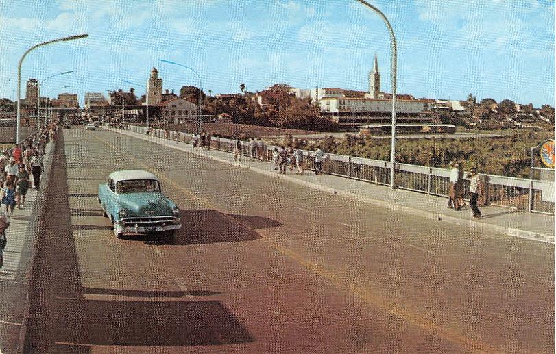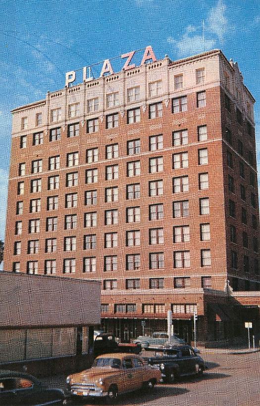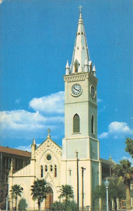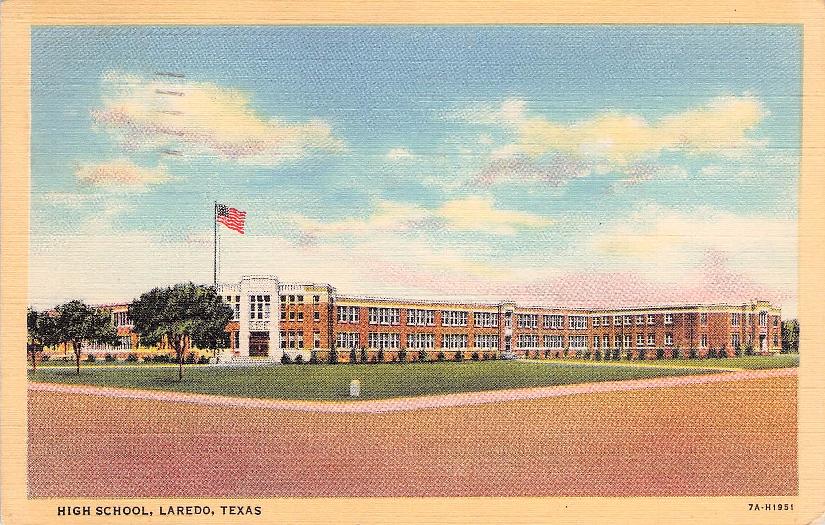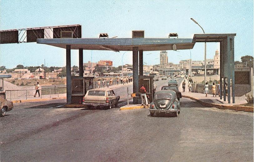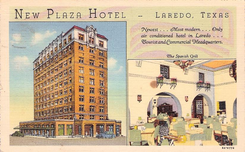 Post cards: “New Plaza Hotel” (linen, 1939); Plaza Hotel (chrome); High School (linen); St. Augustine Catholic Church (chrome); International Bridge (chrome); Border crossing (chrome)
