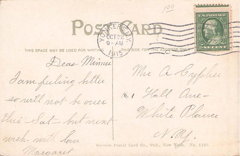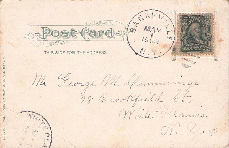 Banksville (1891-1920) 1908 duplex on post card with creased corner
