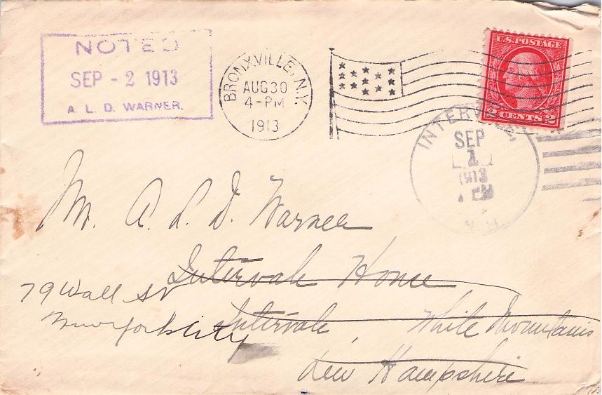 Bronxville 1913 Flag Cancel on cover, also Intervale NH 4-bar as received