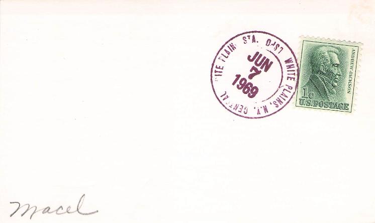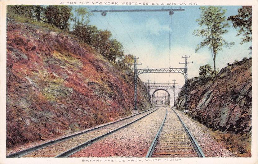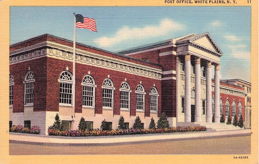 White Plains Post cards: Post office [linen]; New York, Westchester and Boston RR tracks, Bryant Ave. Arch. Central White Plains Sta. 1969 round dater on 3x5 card