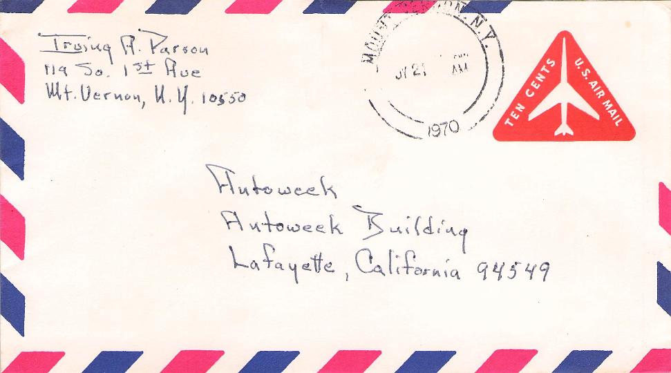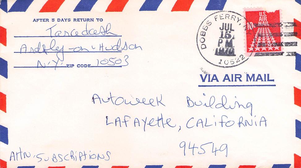 Dobbs Ferry 1970 4-bar on Air Mail cover