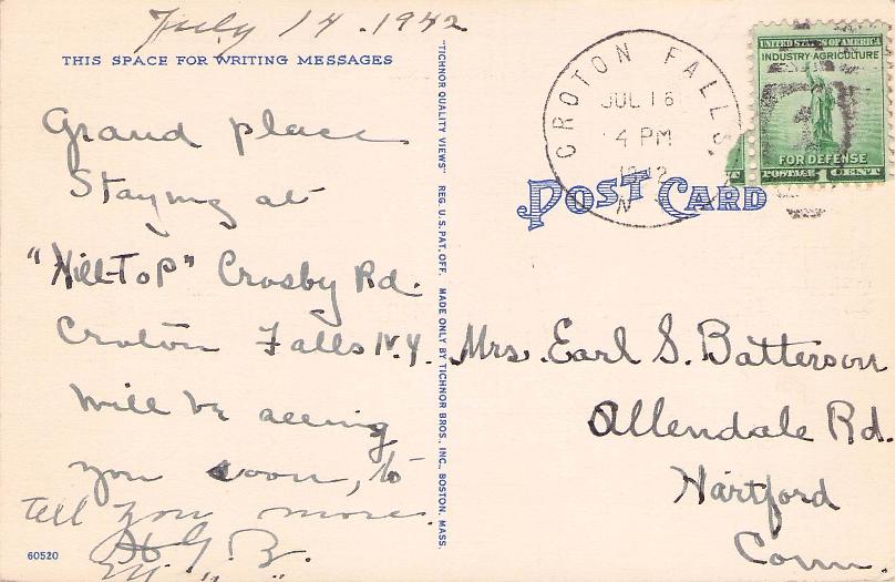 Croton Falls 1942 duplex on post card, generic view with “Greetings from Croton Falls”