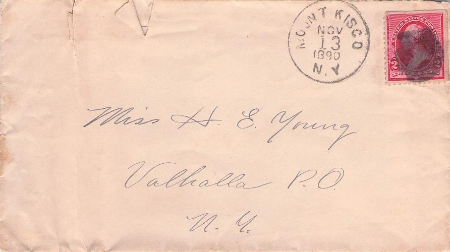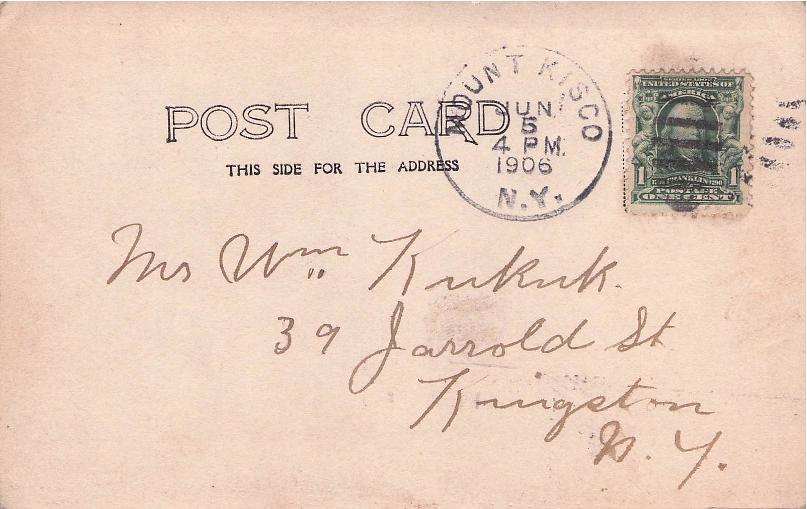 Mount Kisco 1890 cds on cover, rumpled left; 1906 duplex on post card, real photo view of Cottage #2