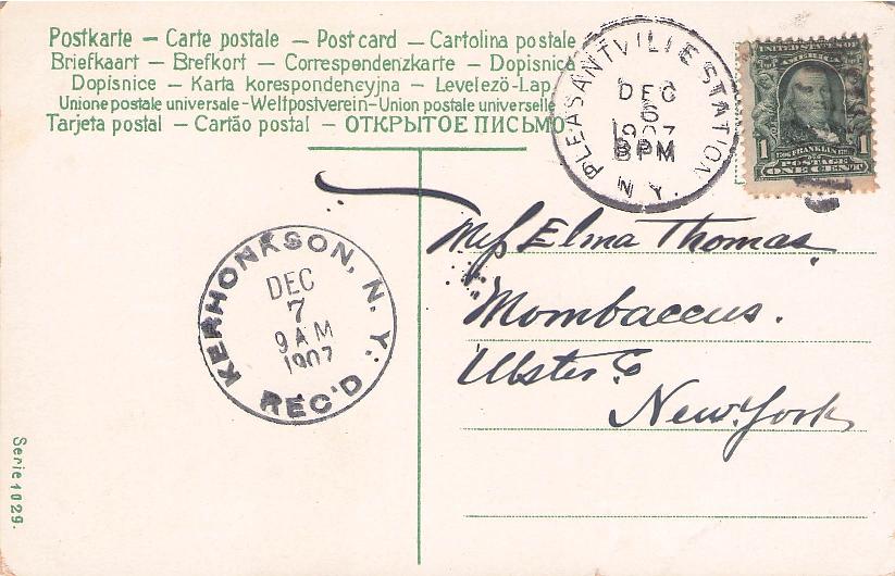 Pleasantville Station (1873-1913) 1907 duplex, also Kerhonkson NY Rec’d on post card