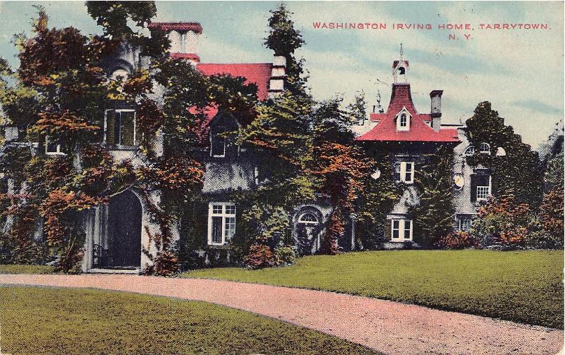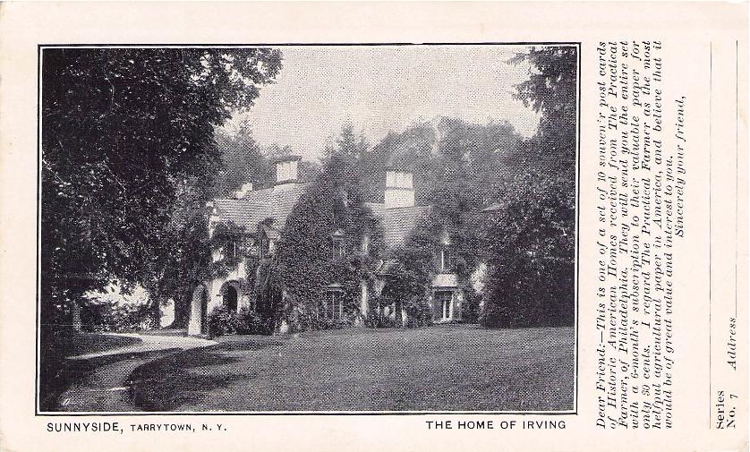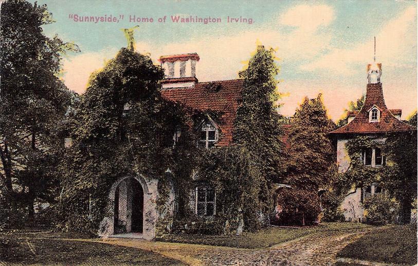 Post cards: 4 Washington Irving Home - Sunnyside [one B&W, two c.1910, one Continental]; “Castle Philips and the Old Mill, Sleepy Hollow” [c.1910]; Hilton Inn [chrome