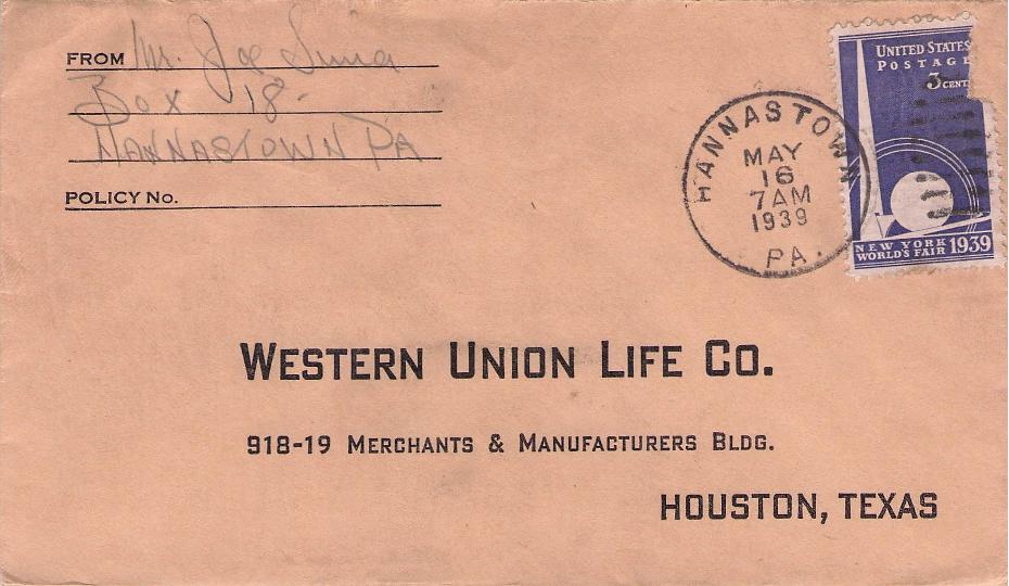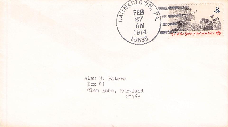 - Hannastown 1939 duplex on cover; 1974 4-bar on cover