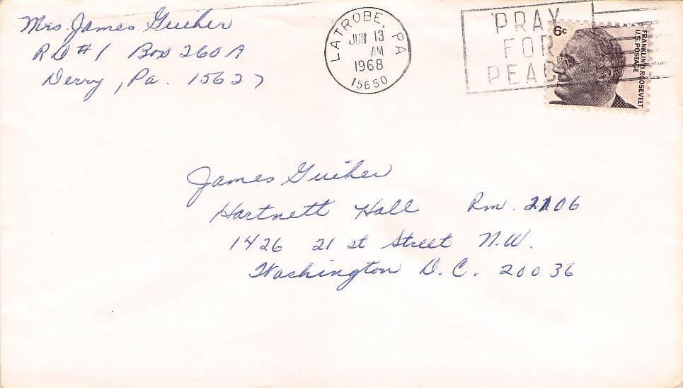 - Latrobe 1968 machine slogan “Pray for Peace”.