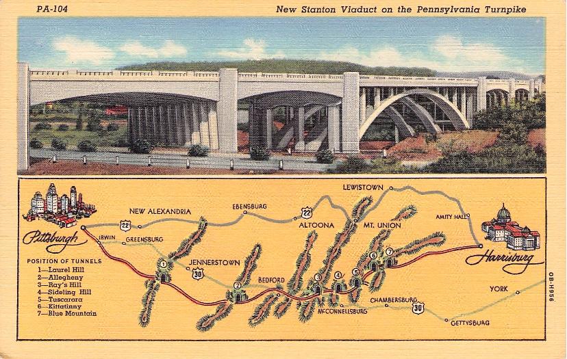 - Irwin Post card: Turnpike interchange, aerial view (linen)