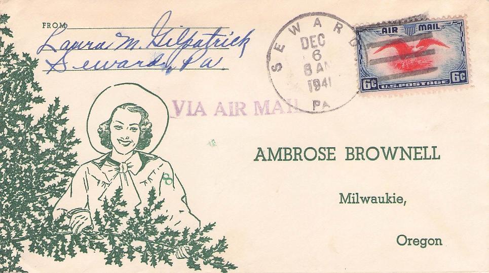 - Seward 1941 4-bar on cacheted cover, postmarked the day before Pearl Harbor
