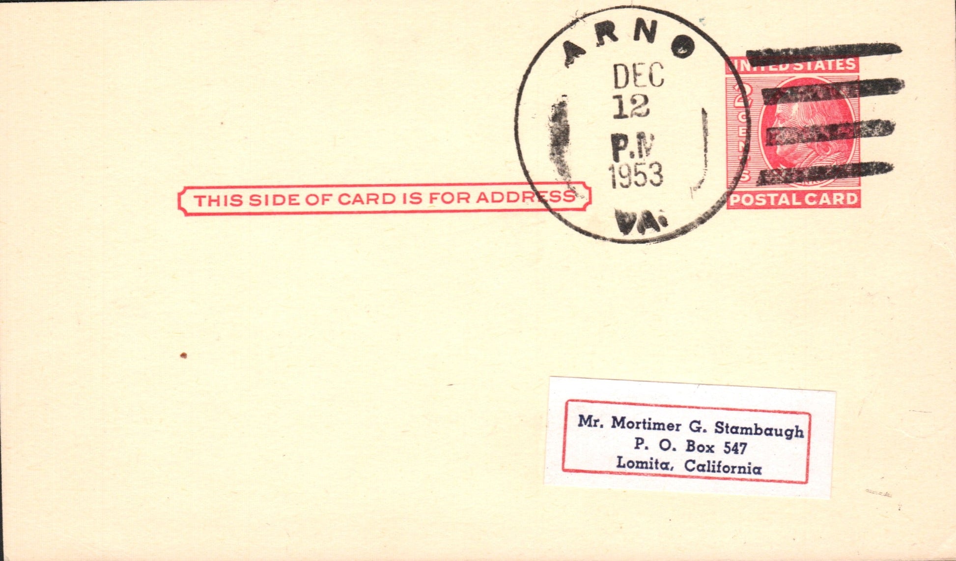 Arno (1909-1954) 1953 4-bar on Postal Card