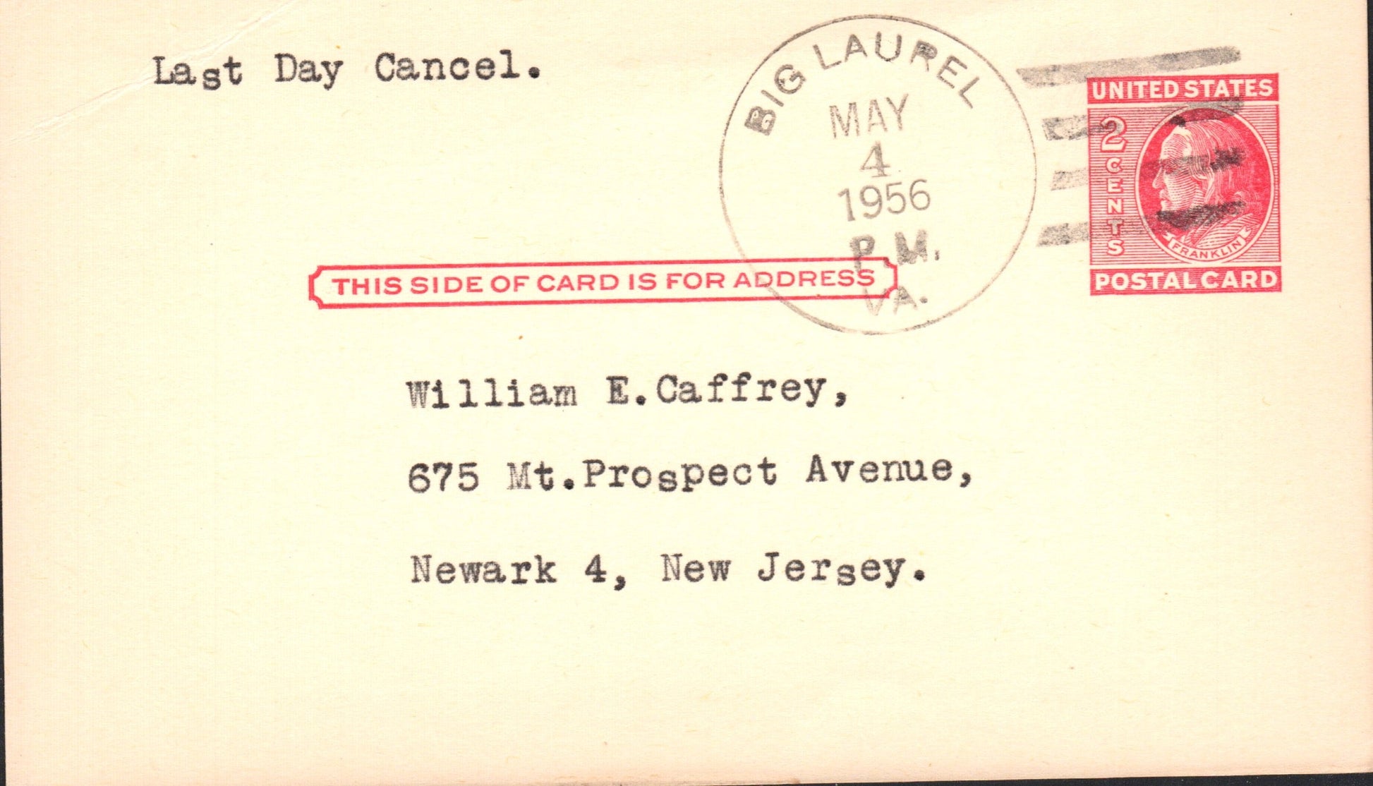 Big Laurel (1912/1956) 1956 4-bar on Post Card