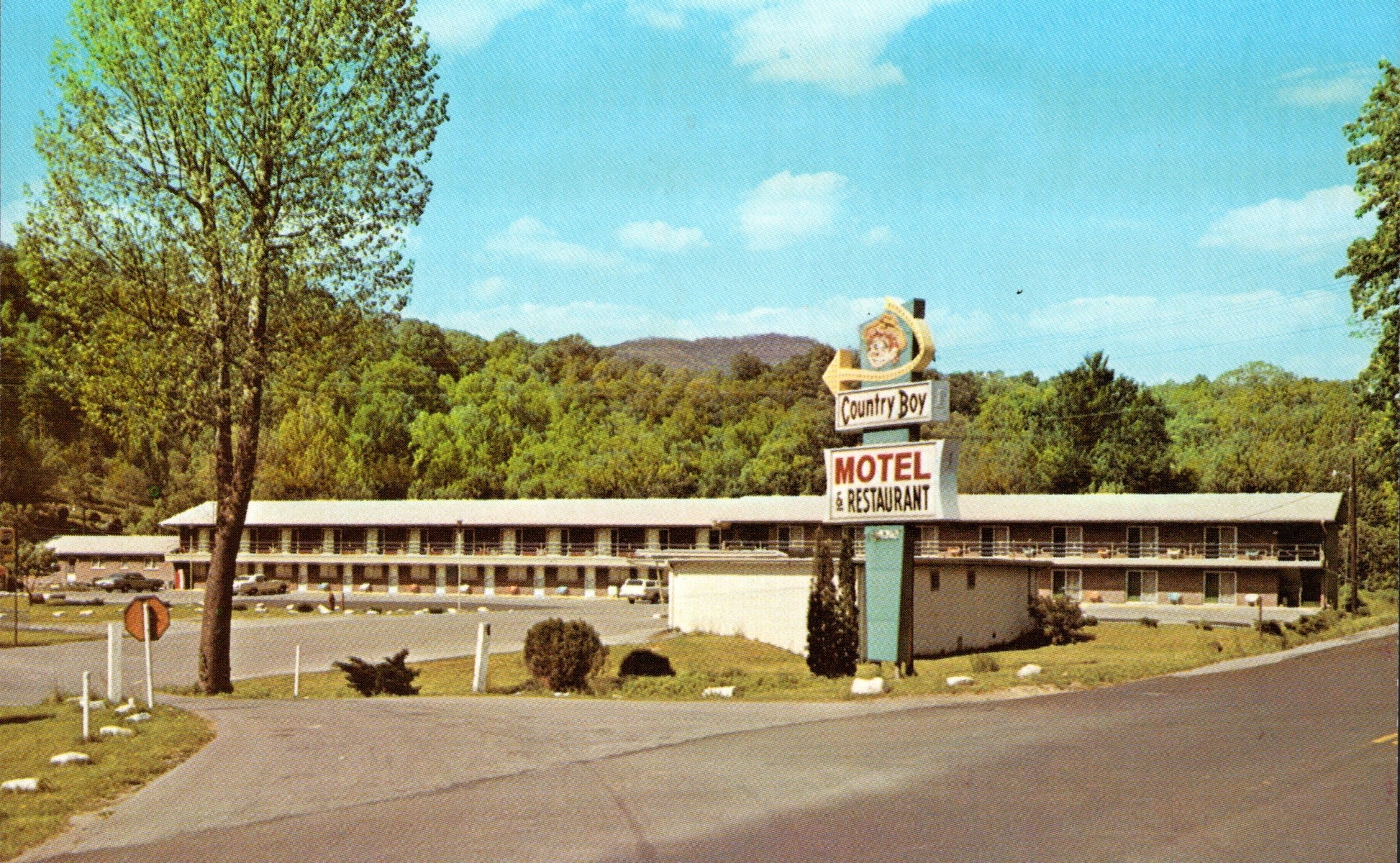 Big Stone Gap light 1948 machine cancel on Postal Card, PM autograph. Post cards: Country Boy Motel [chrome]; Demoisey’s Coach House [3 views on one chrome card]