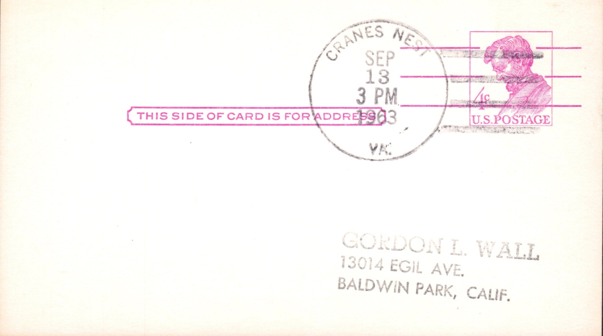 Pardee (1911-1963) 1963 4-bar on LD cover-sized card