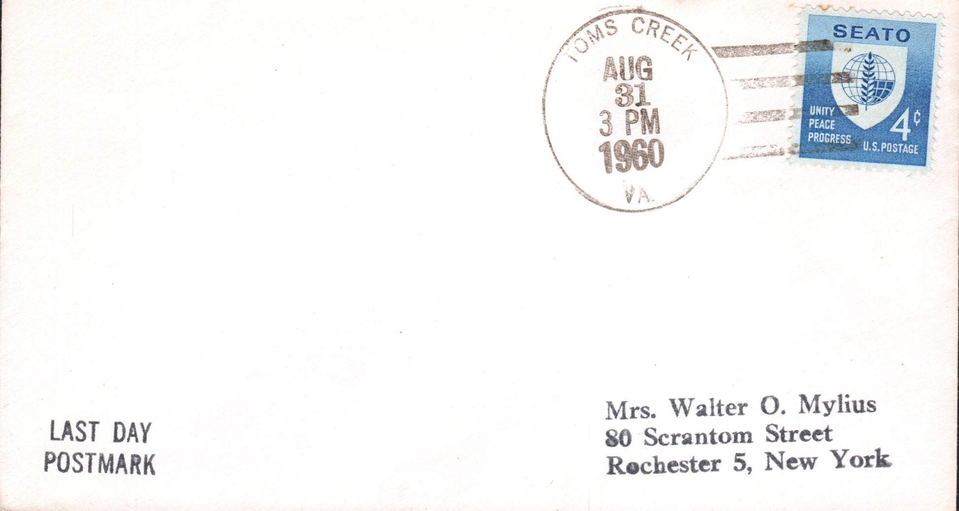 Toms Creek (1911-1960) 1960 4-bar on cover