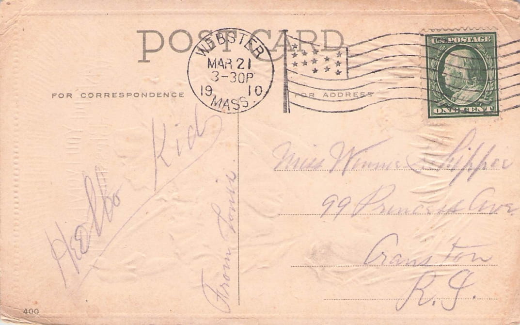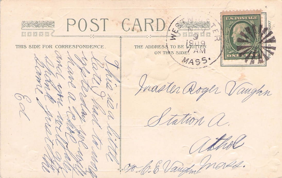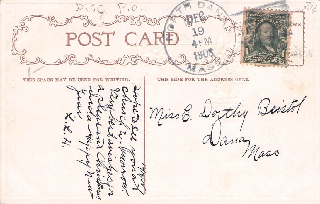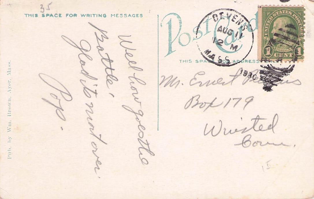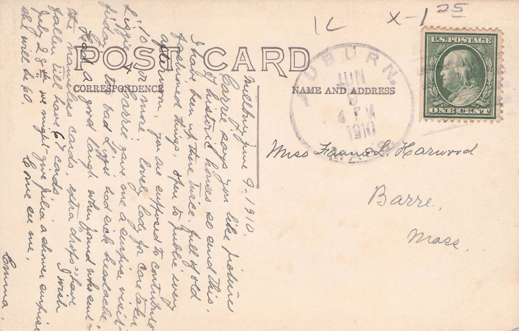 Auburn 1910 4-bar on post card, real photo of Rufus Putnam house, Rutland, Mass.