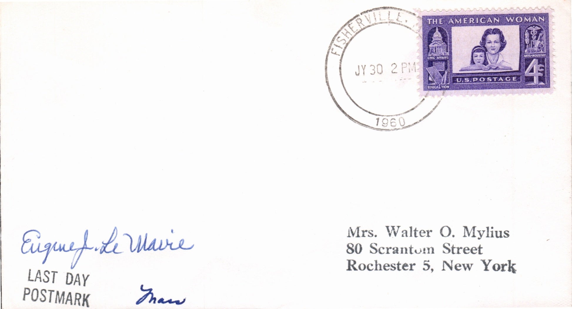 Fisherville (1882-1960) 1960 double circle on LD cover, PM autograph