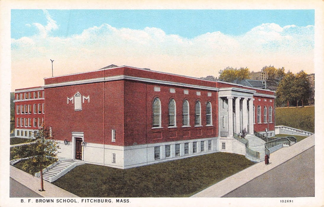 Post cards: B.F. Brown School [c.1930]; Monument Square [1910]