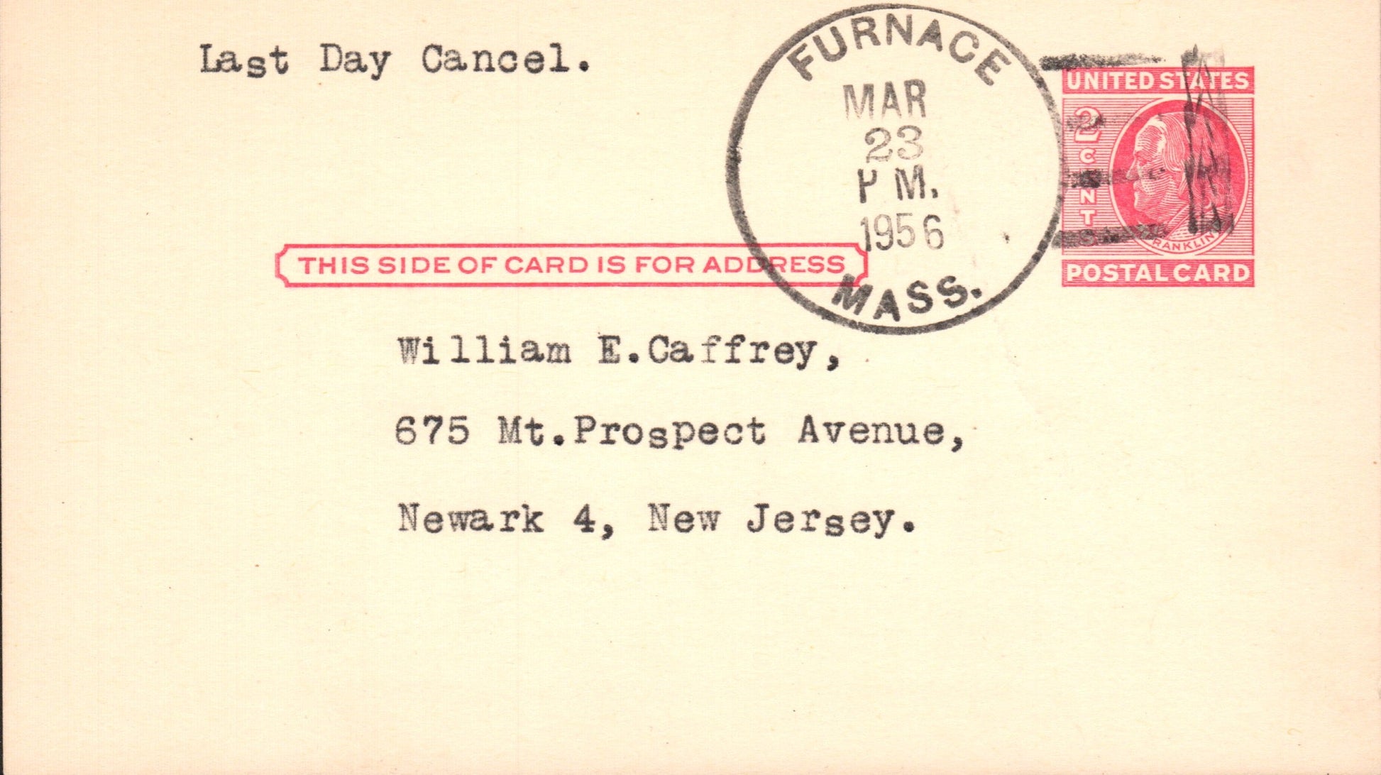 Furnace (1875-1956) 1956 1956 4-bar on LD Postal Card