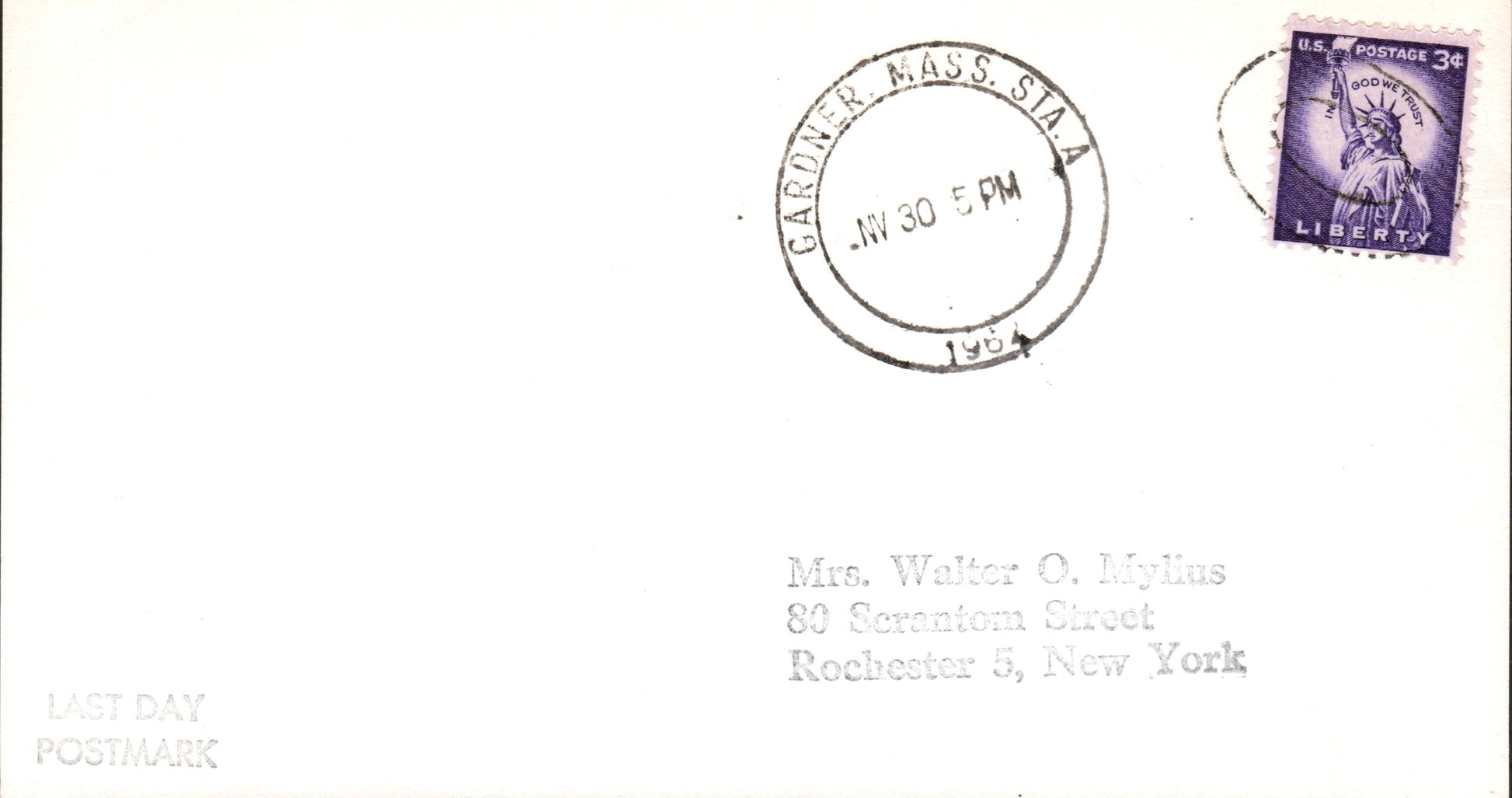 Gardner Sta. A 1964 double circle on LD cover-sized card