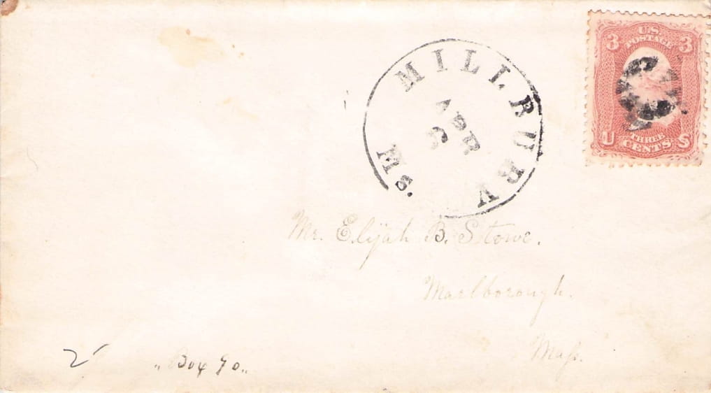 Petersham 1840s cds, handwritten “3” and stamped “Paid” stampless cover