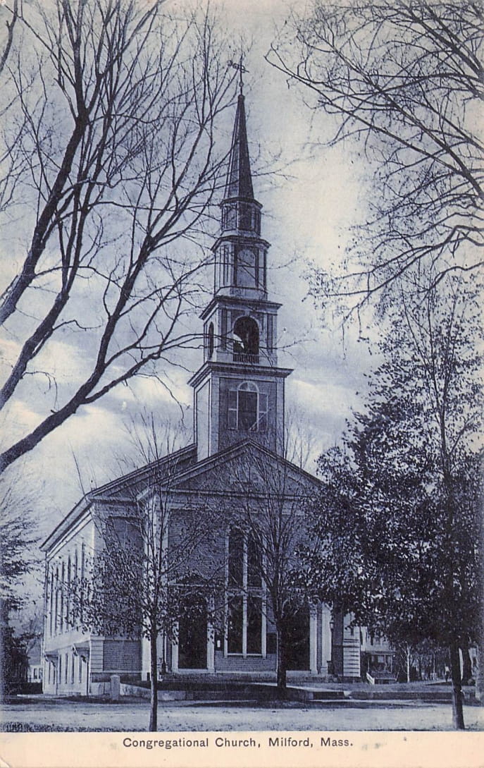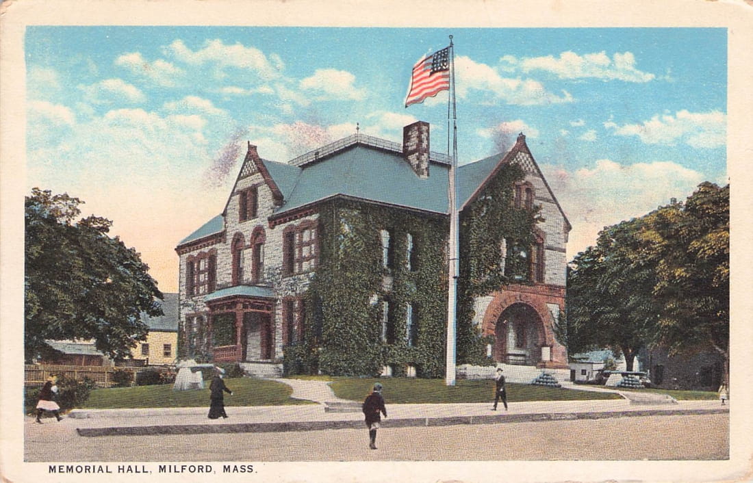 Milford Post cards: Memorial Hall [1925]; “Congregational church” [bluish B&W]