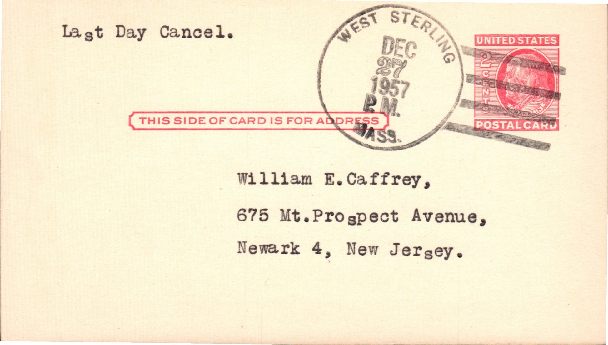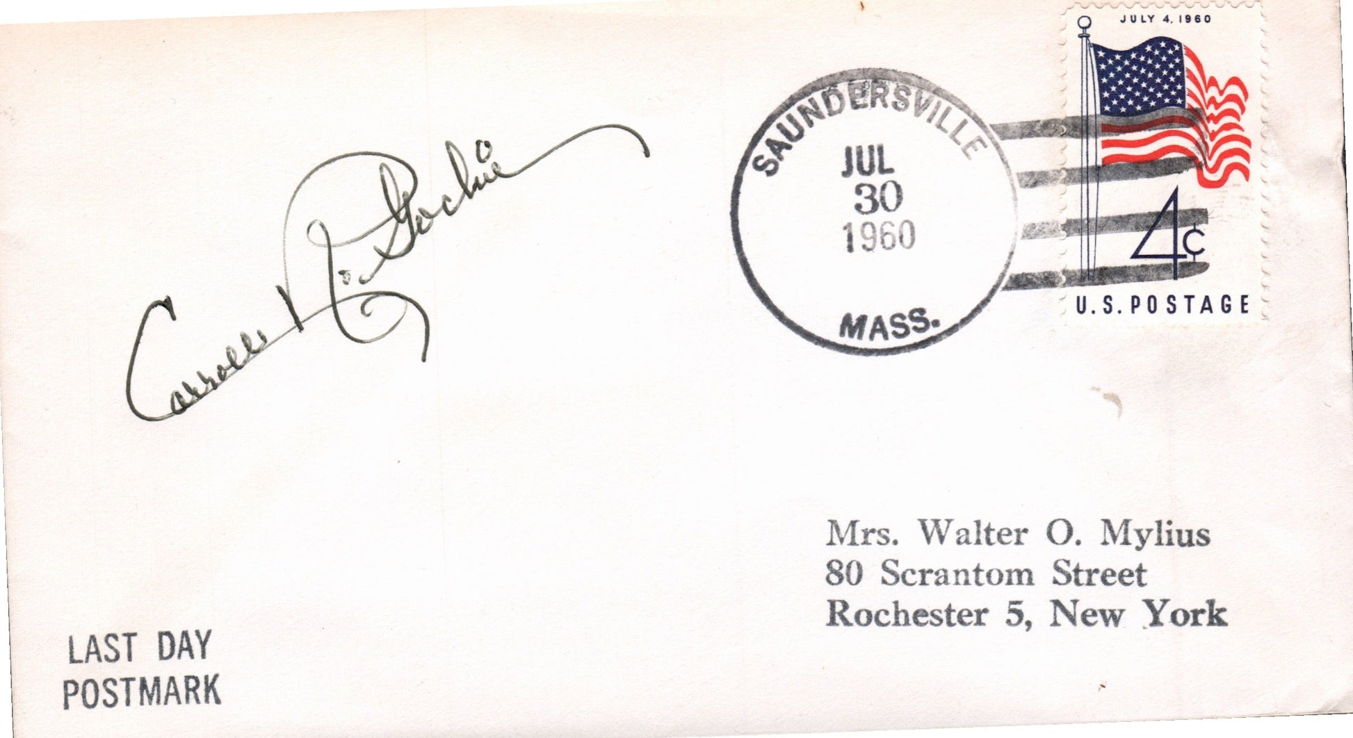 Boylston Center (1850-1960) 1960 double circle [no “-ter”] on LD cover, PM autograph