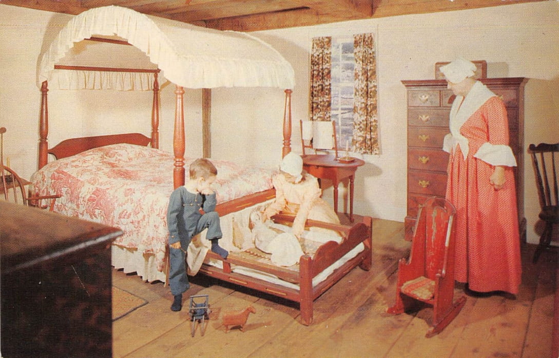 Sturbridge c.1910 4-bar on post card; 1958 machine cancel on post card; 1979 machine cancel on cover. Post cards: Village Motel [chrome]; Treadway Inn [B&W]; Meetinghouse [chrome]; Richardson Salt-box House interior [chrome]