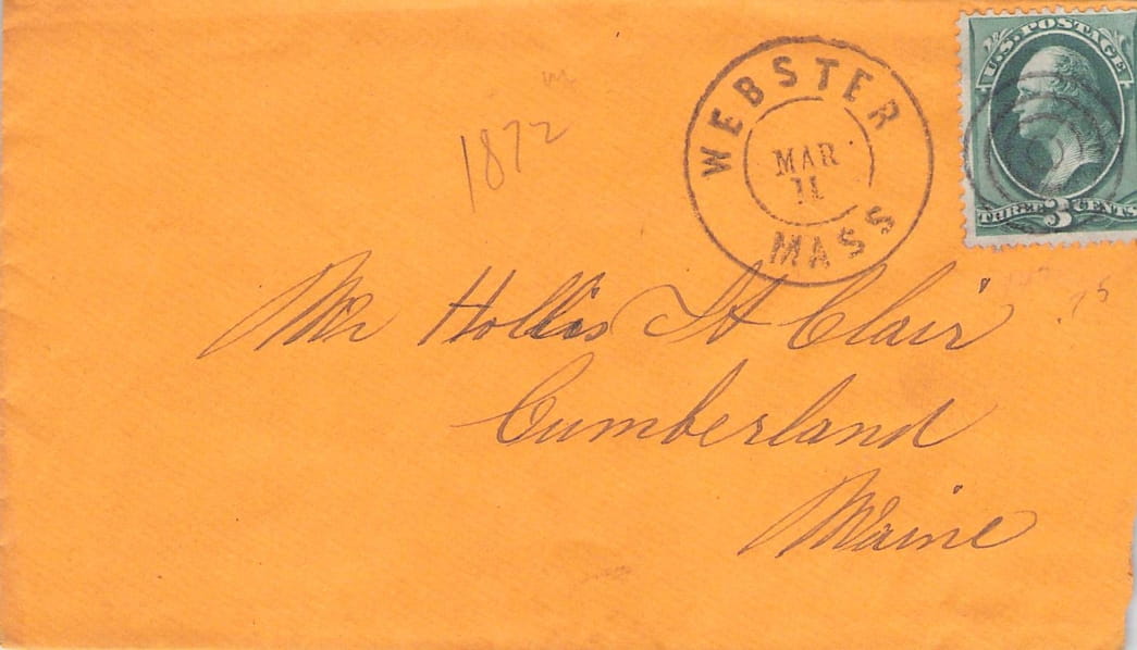 Webster c. 1872 double circle on cover; 1910 Flag cancel on post card.