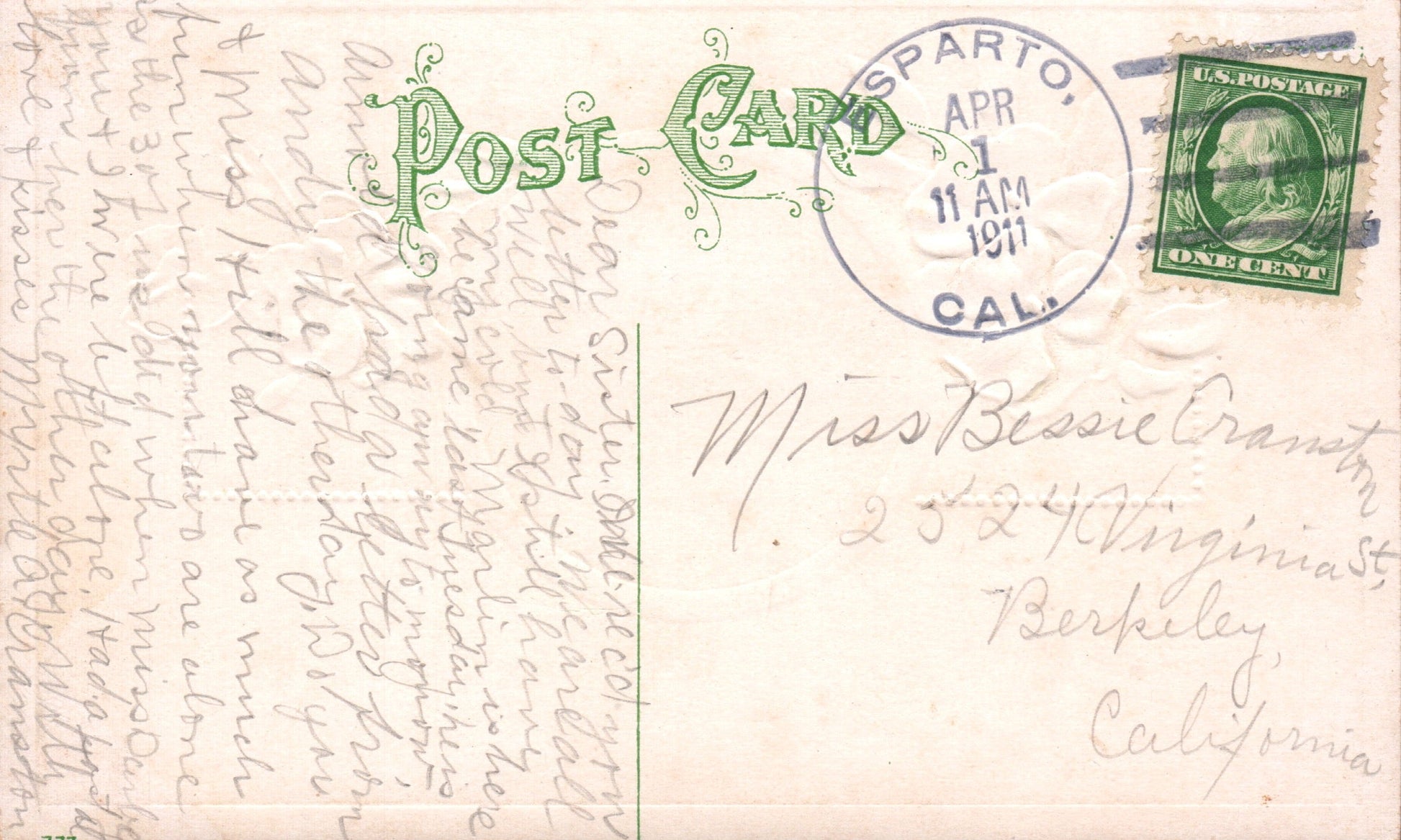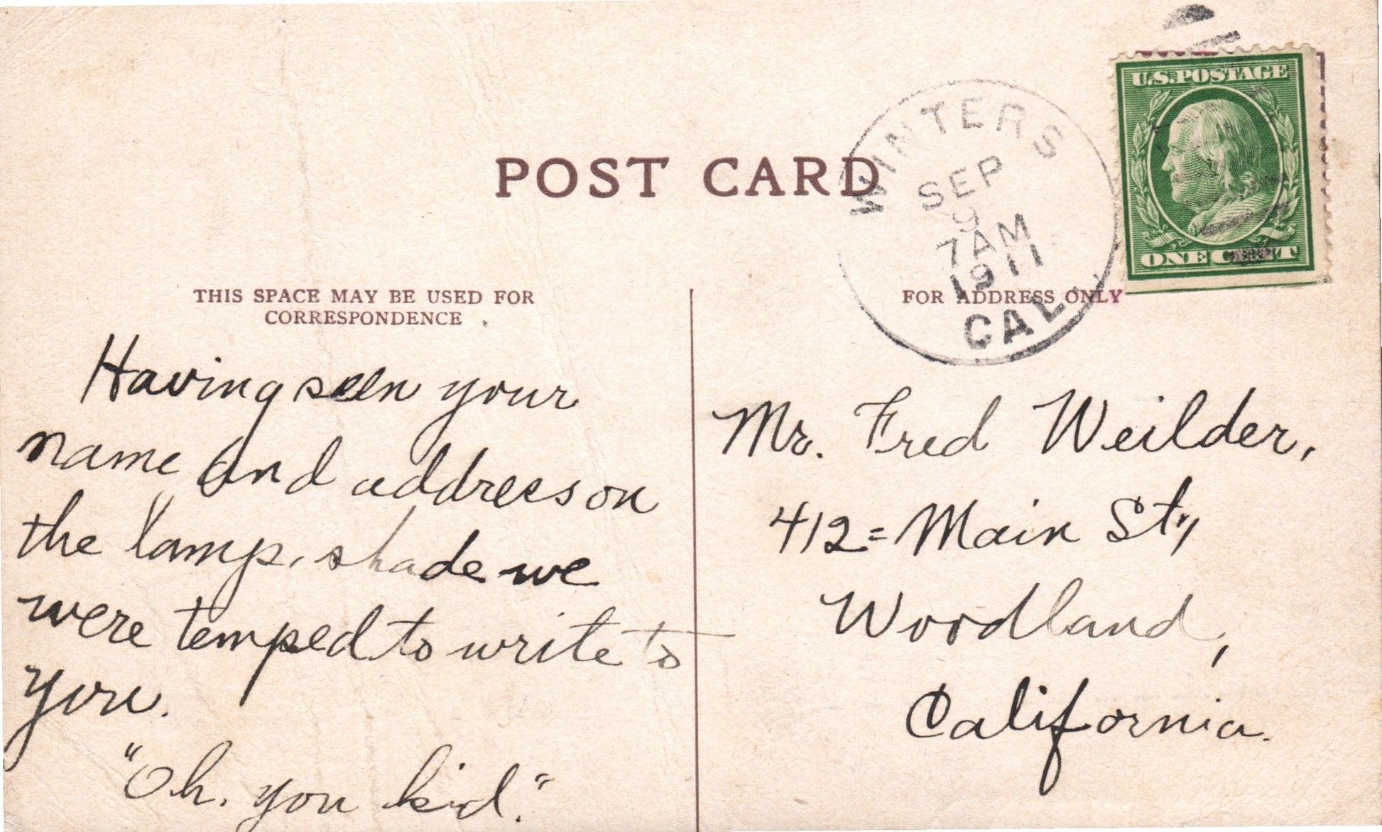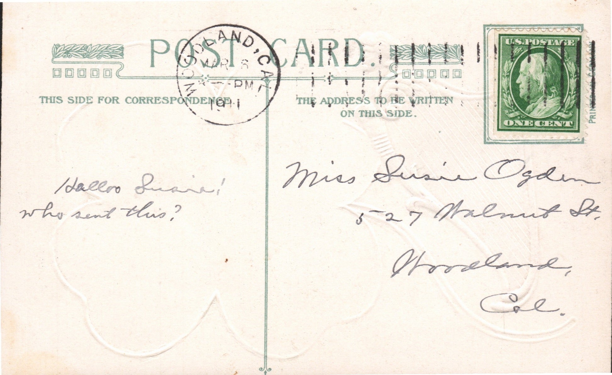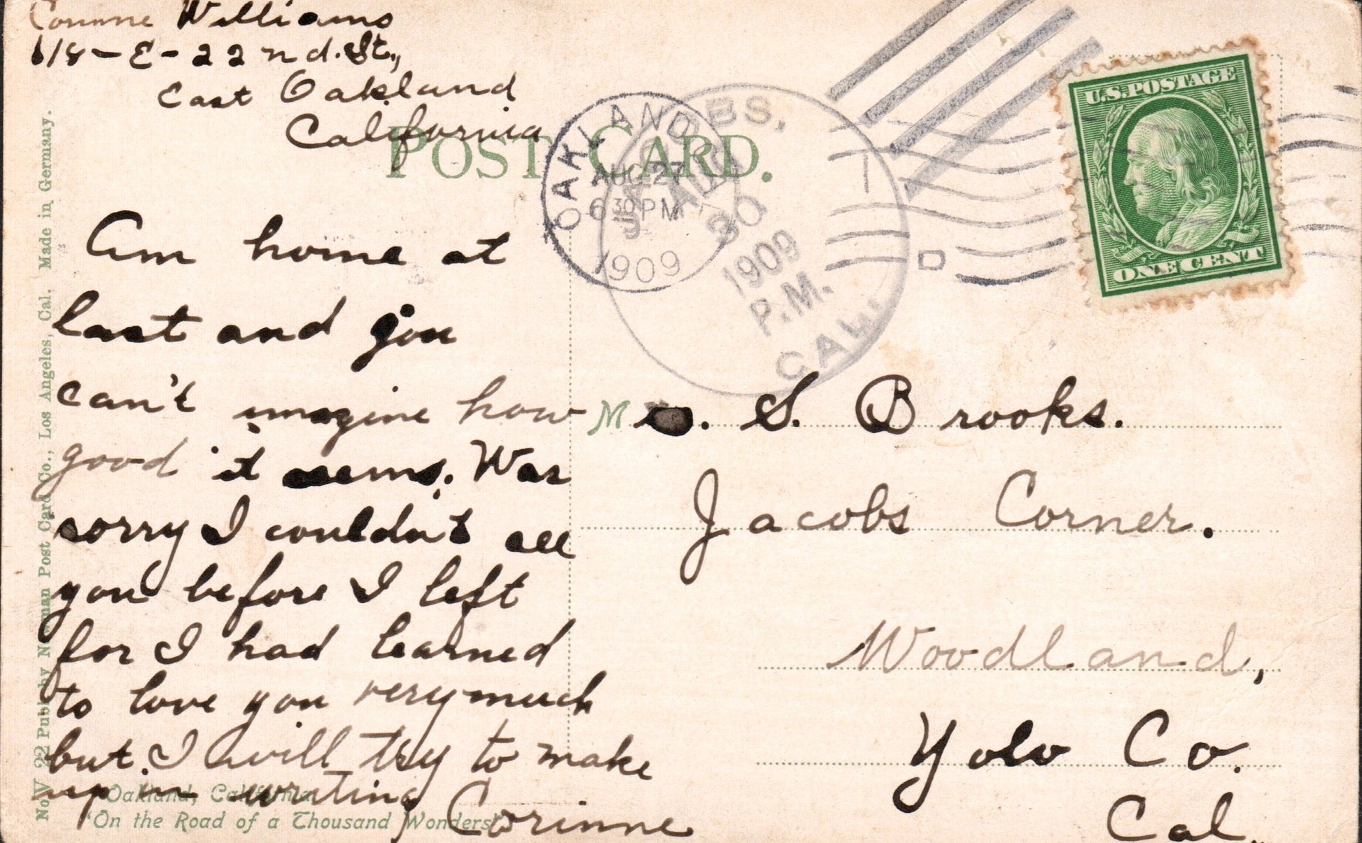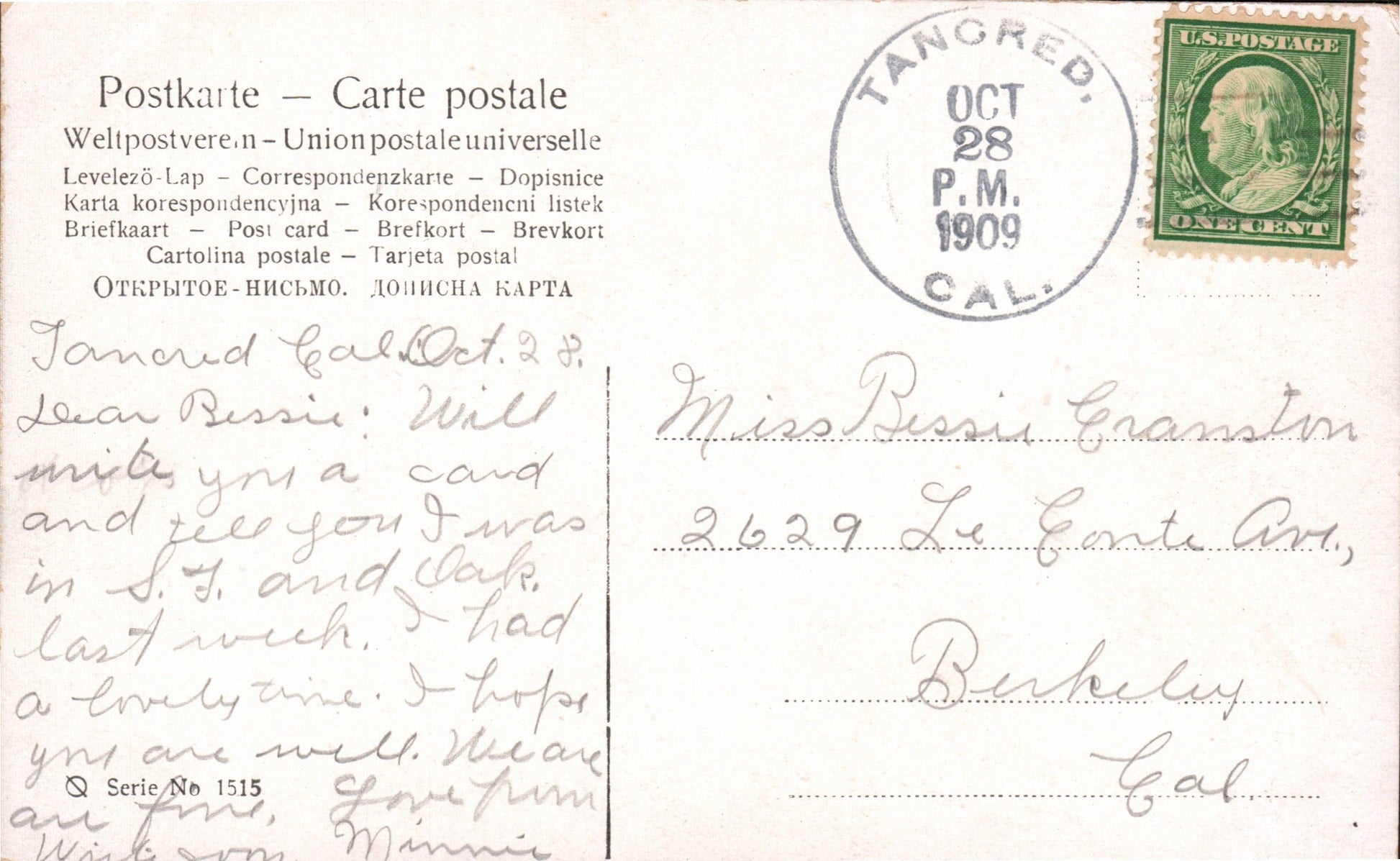 Jacobs (1909-1910) 1909 4-bar as rec’d on post card from Oakland