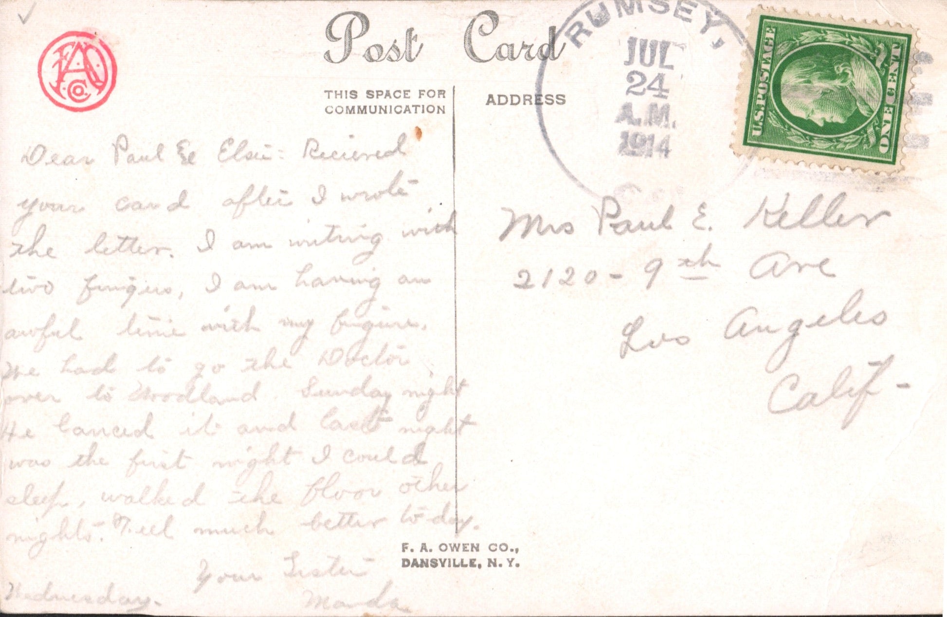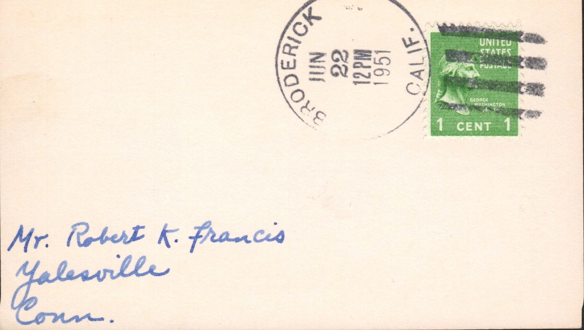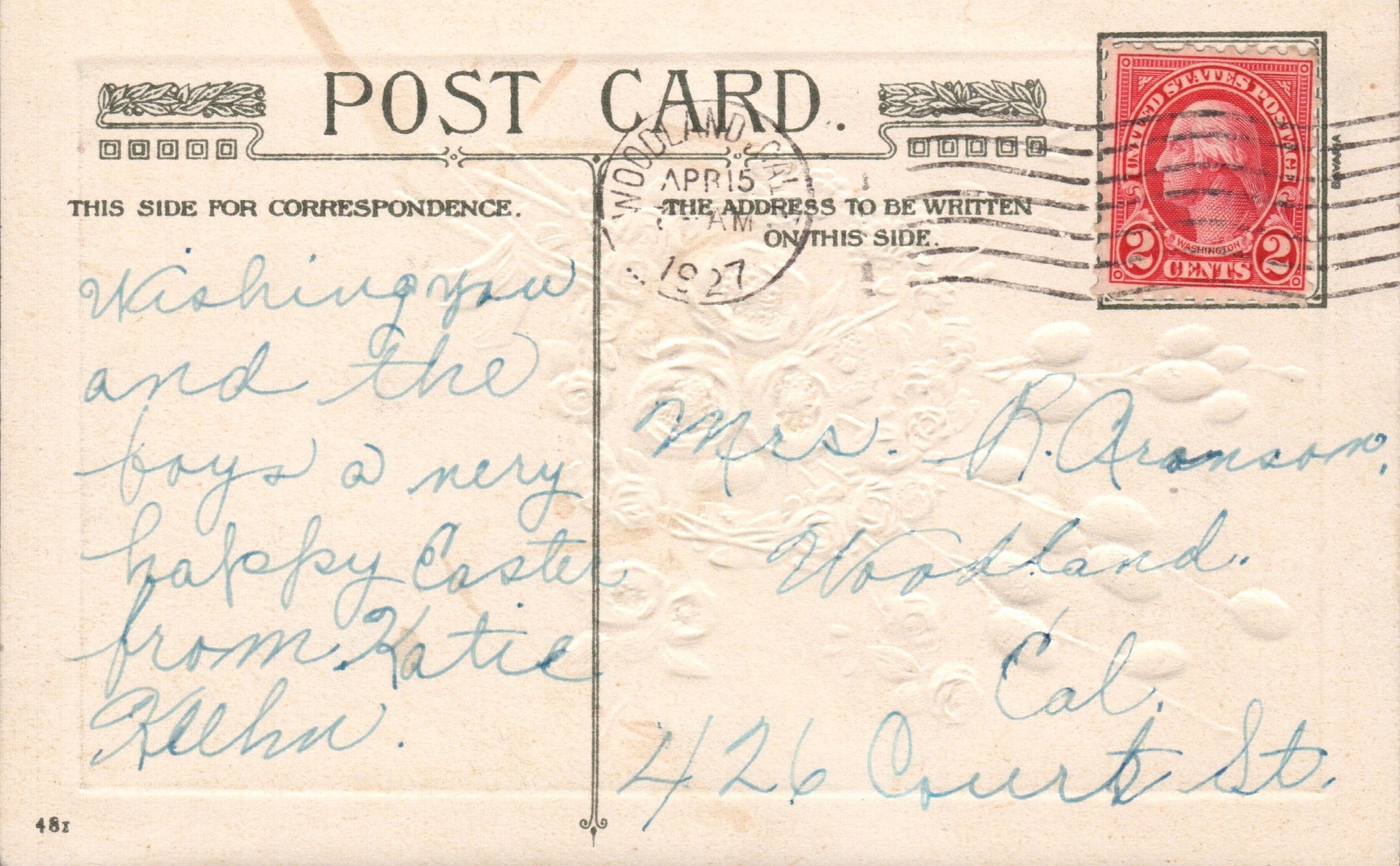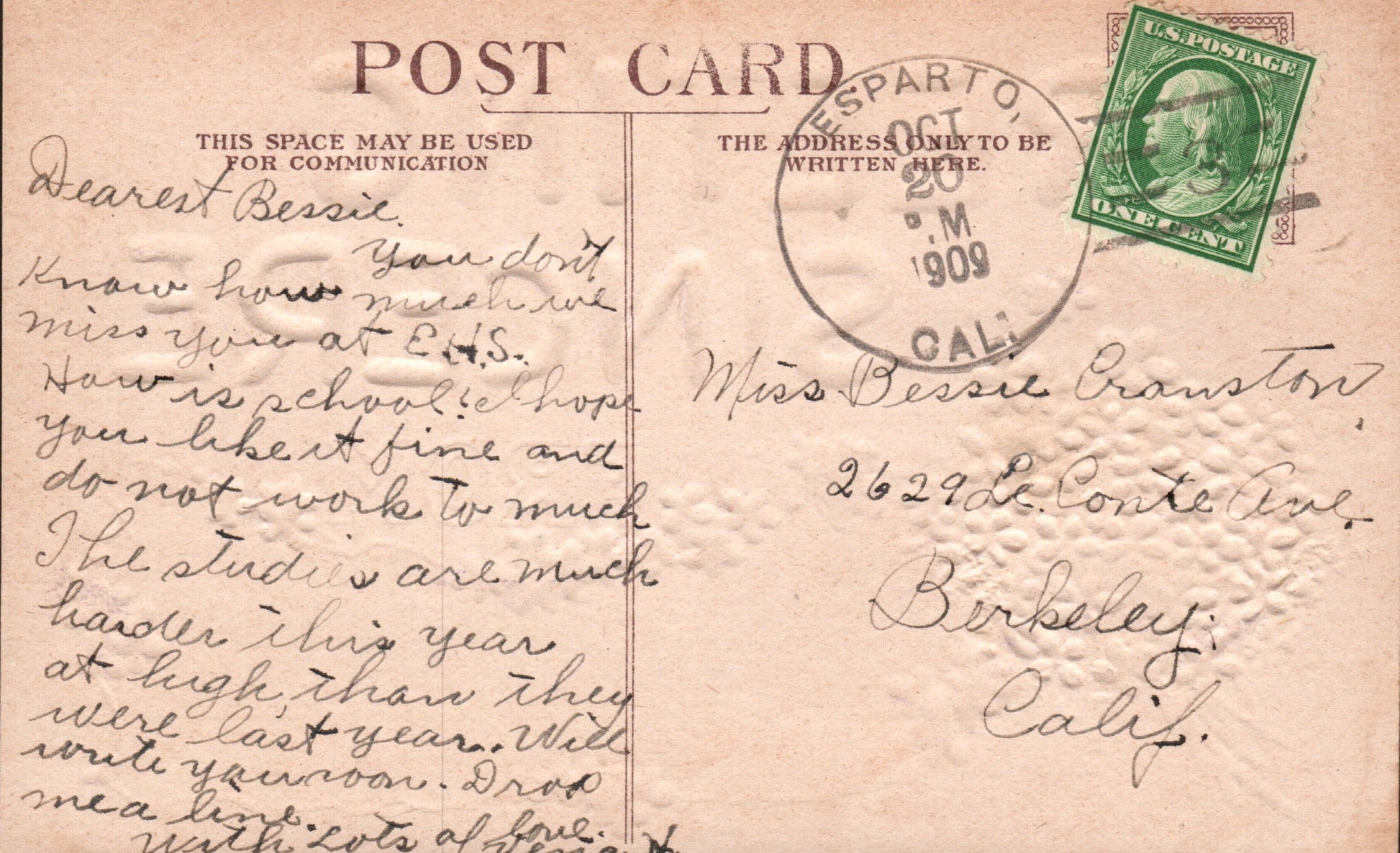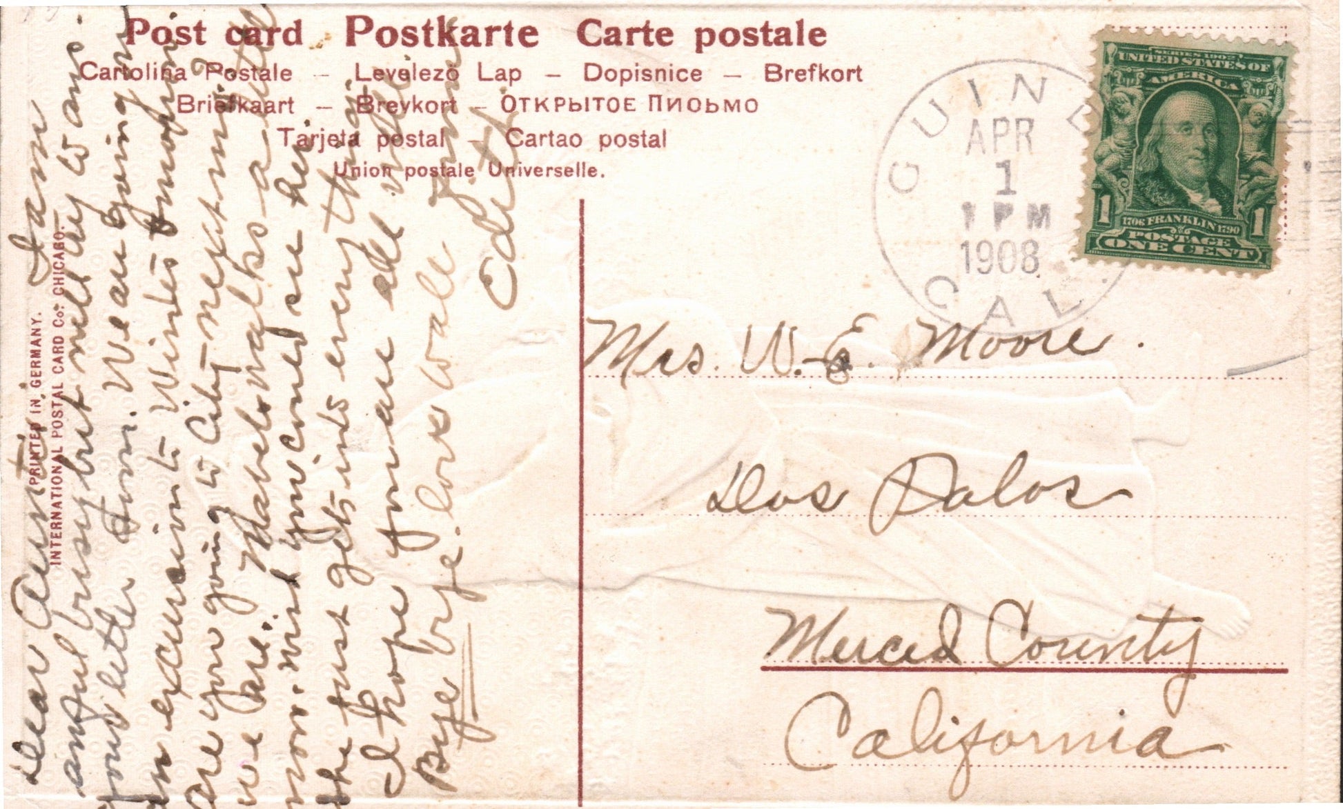 Jacobs (1909-1910) 1909 4-bar as rec’d on post card from Oakland