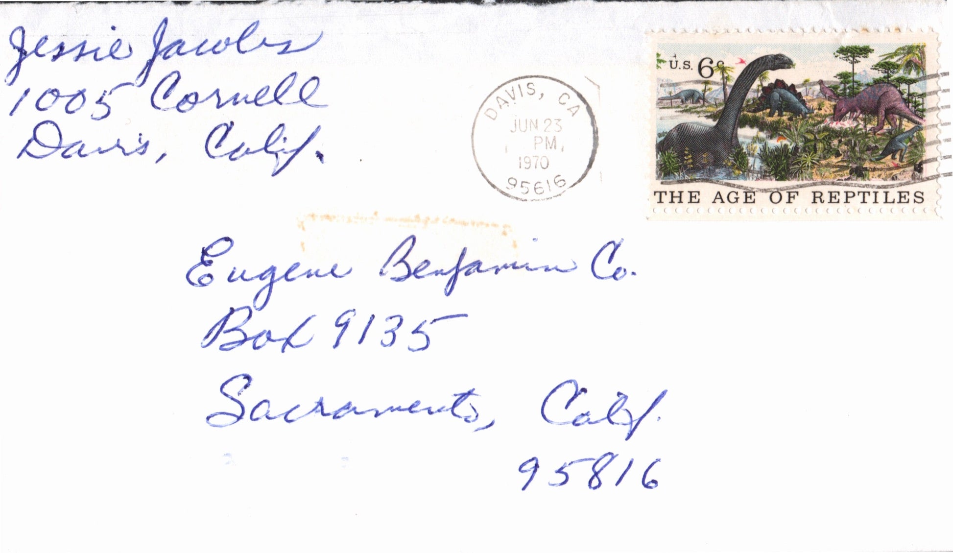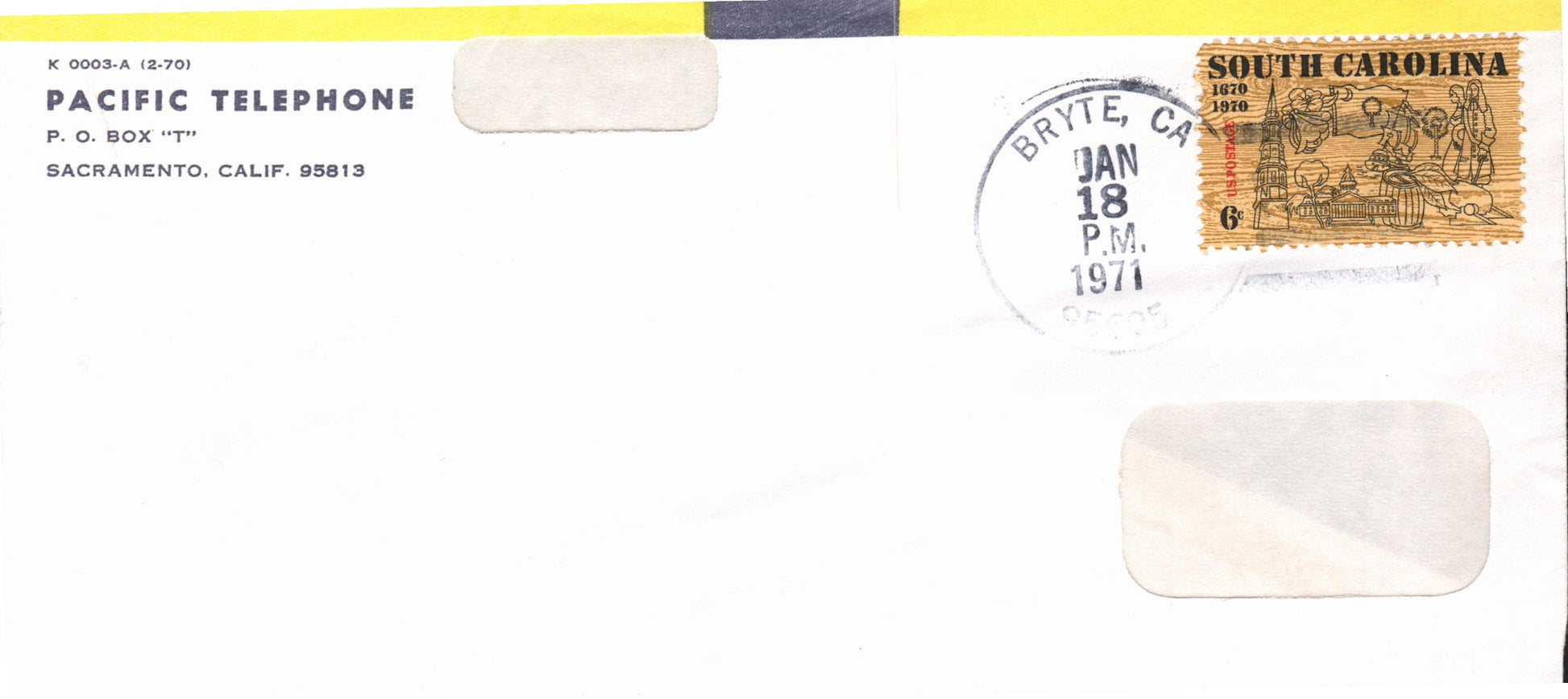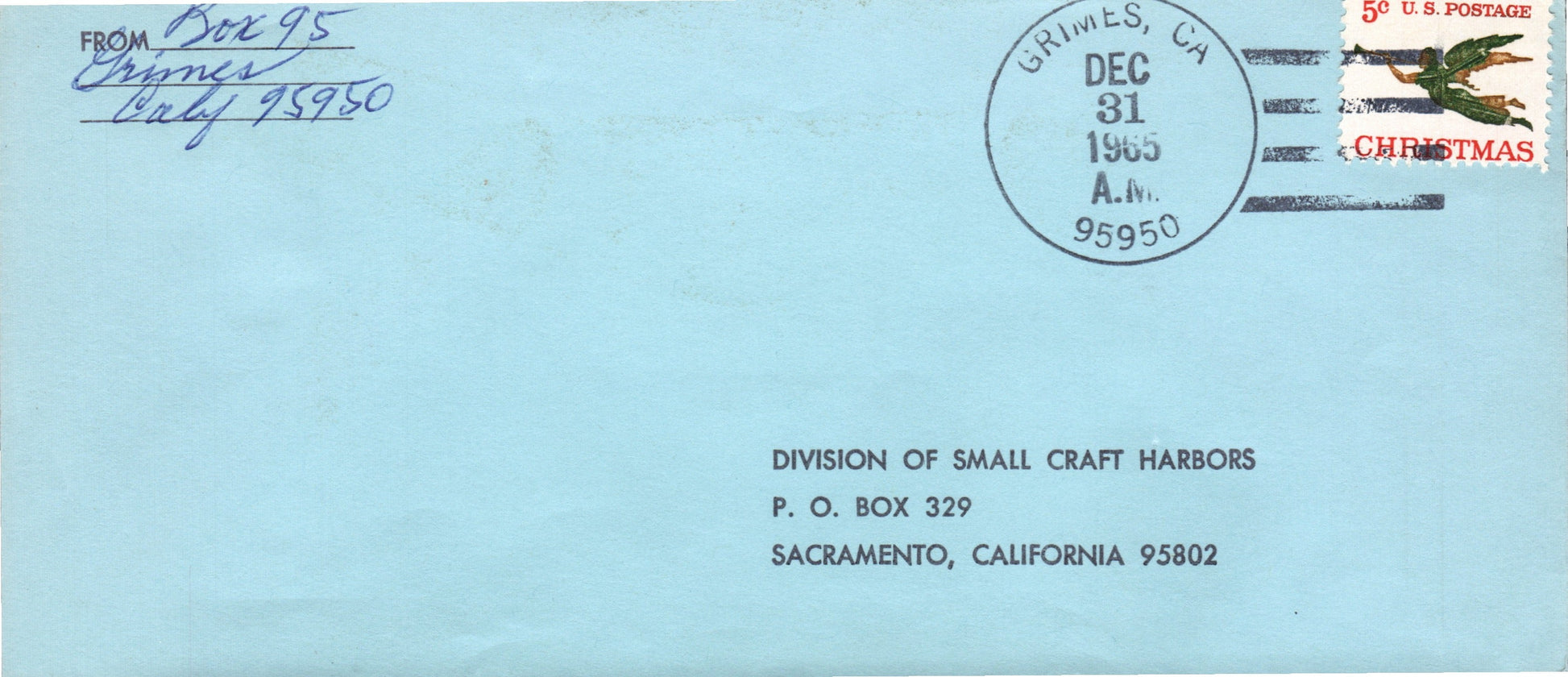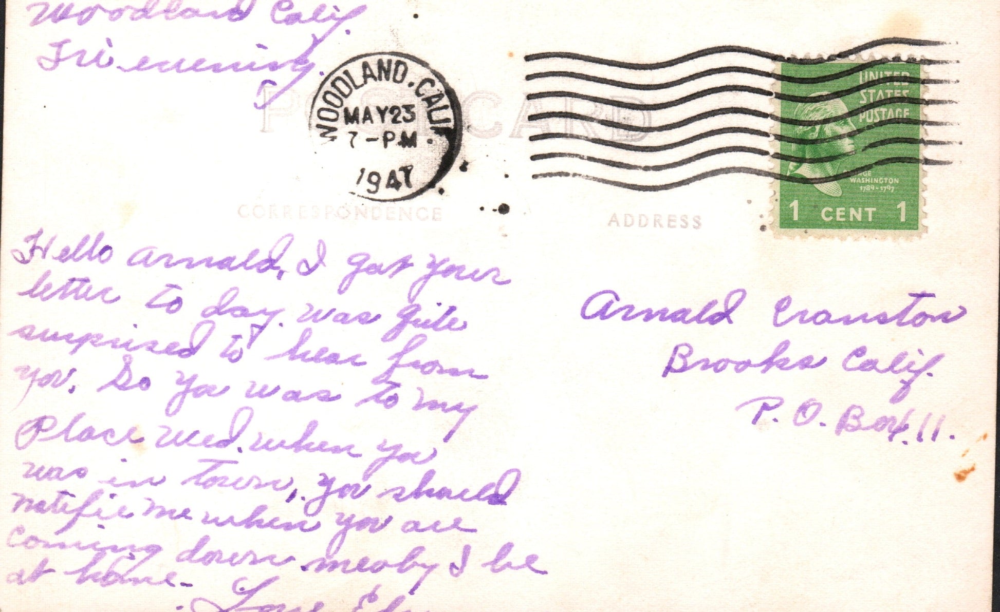 Capay 1907 duplex on post card, also straight-line Brooks Rec’d; 1914 4-bar on post as rec’d strike on post card from Berkeley, view of U.C. East Hall; 1960 4-bar on Postal Card; 1965 4-bar on cover