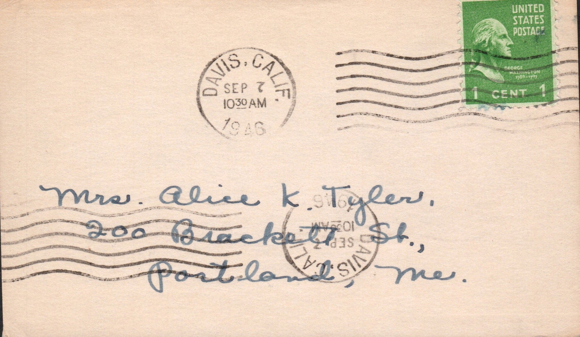 Davis 1915 duplex on post card; 1946 machine cancel on 3x5 card; 1970 machine cancel on cover