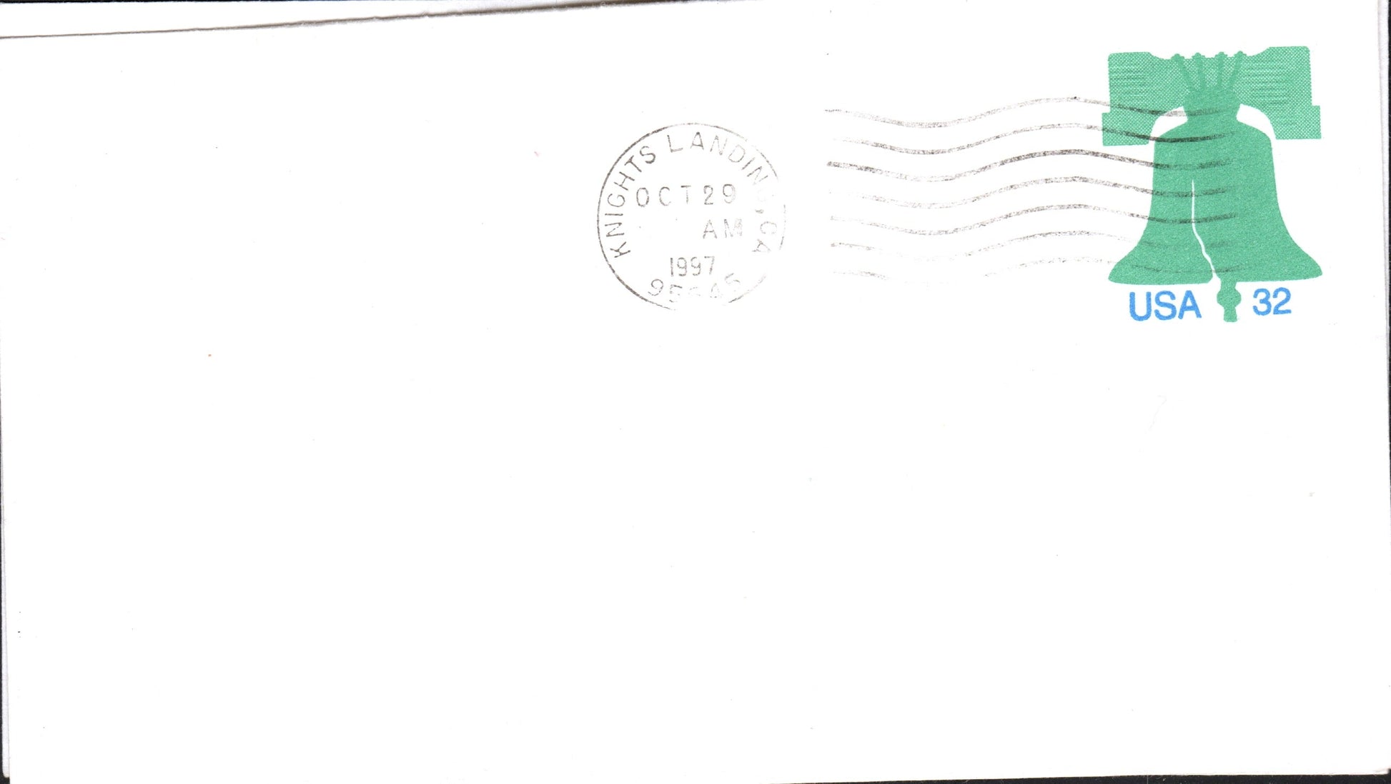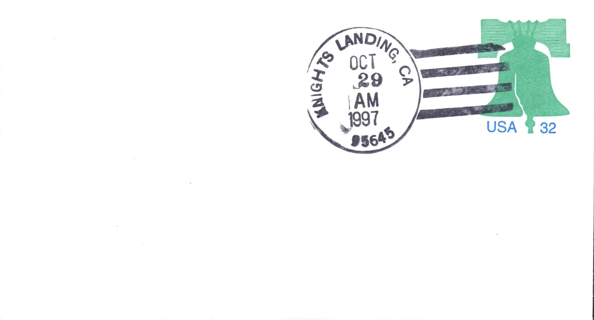 Knights Landing 1997 4-bar on unaddressed cover; 1997 machine cancel on unaddressed cover